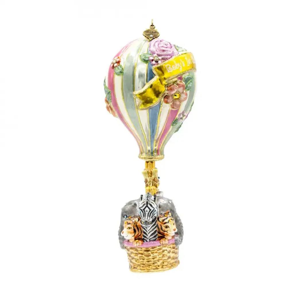 A cherished heirloom marking a precious milestone, this 2025 Annual Baby Balloon Ornament delights with a graceful hot air balloon. Inside, a menagerie of safari animals—giraffe, zebra, tiger, lion, elephant—are beautifully rendered in serene pastel hues, and exquisitely detailed with 'Baby's 1st Christmas 2025' for an unforgettable first holiday.