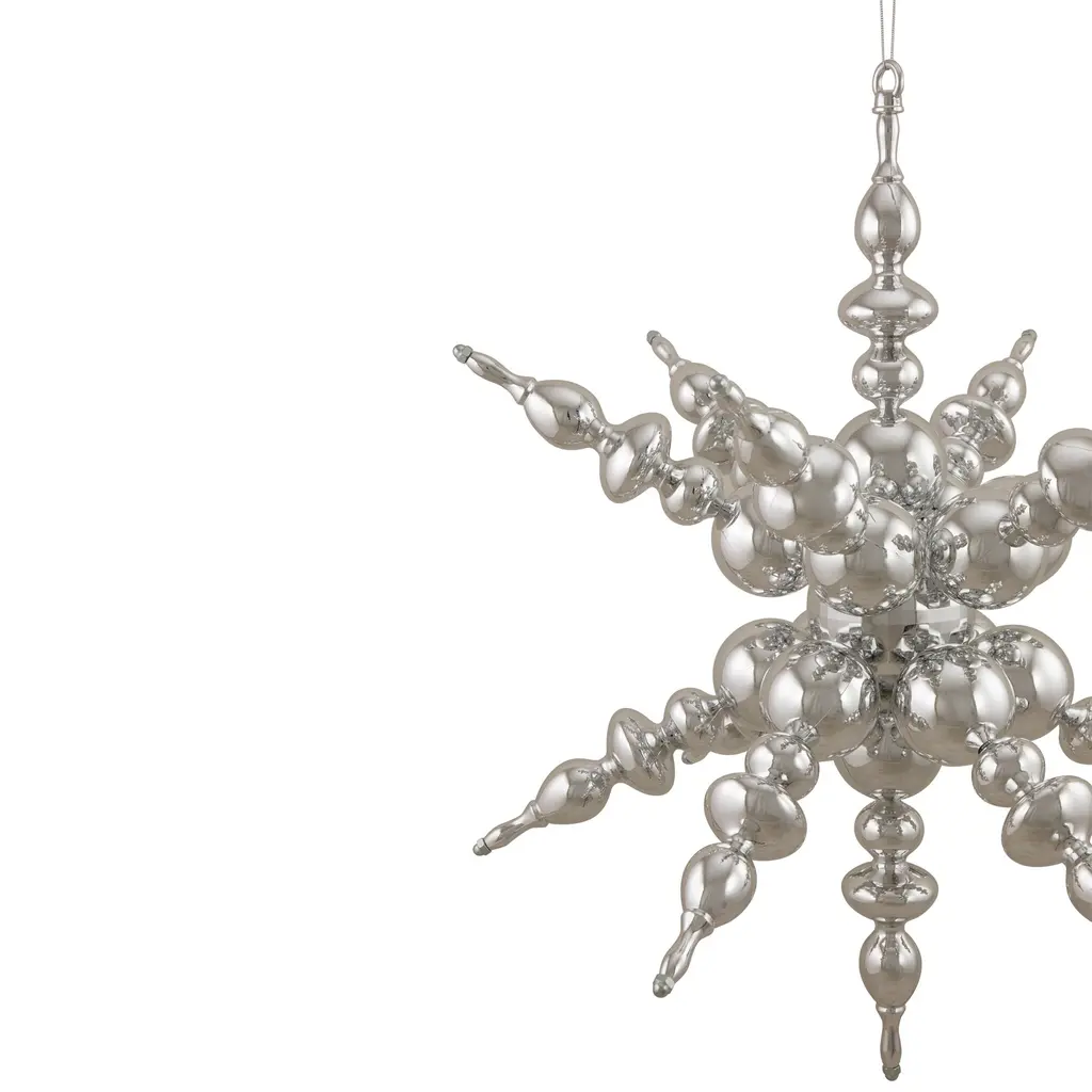 This very unique 3D shiny snowflake ornament is perfect for commercial decorating. Just the right size to make a bold holiday statement. Shatterproof ornaments combine the beauty and luster of real glass with the unbreakable practicality. Product Features: Finish: shiny Commercial sized hanging ornament Some assembly required Fully dimensional ornament Comes ready to hang on a silver loop Recommended for indoor use only Dimensions: 24"H x 22"W x 22"D Material(s): plastic