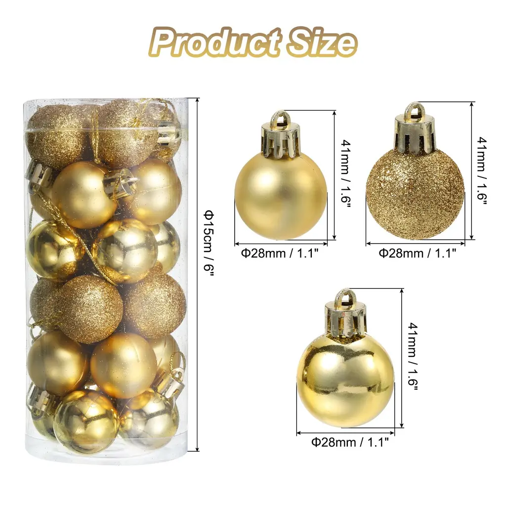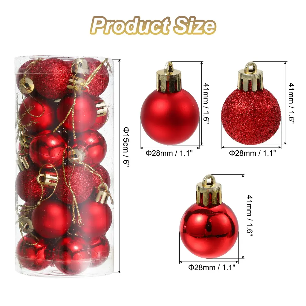 24pcs 1.1" Christmas Balls Ornaments Shatterproof Hanging Balls Set - Rose Red