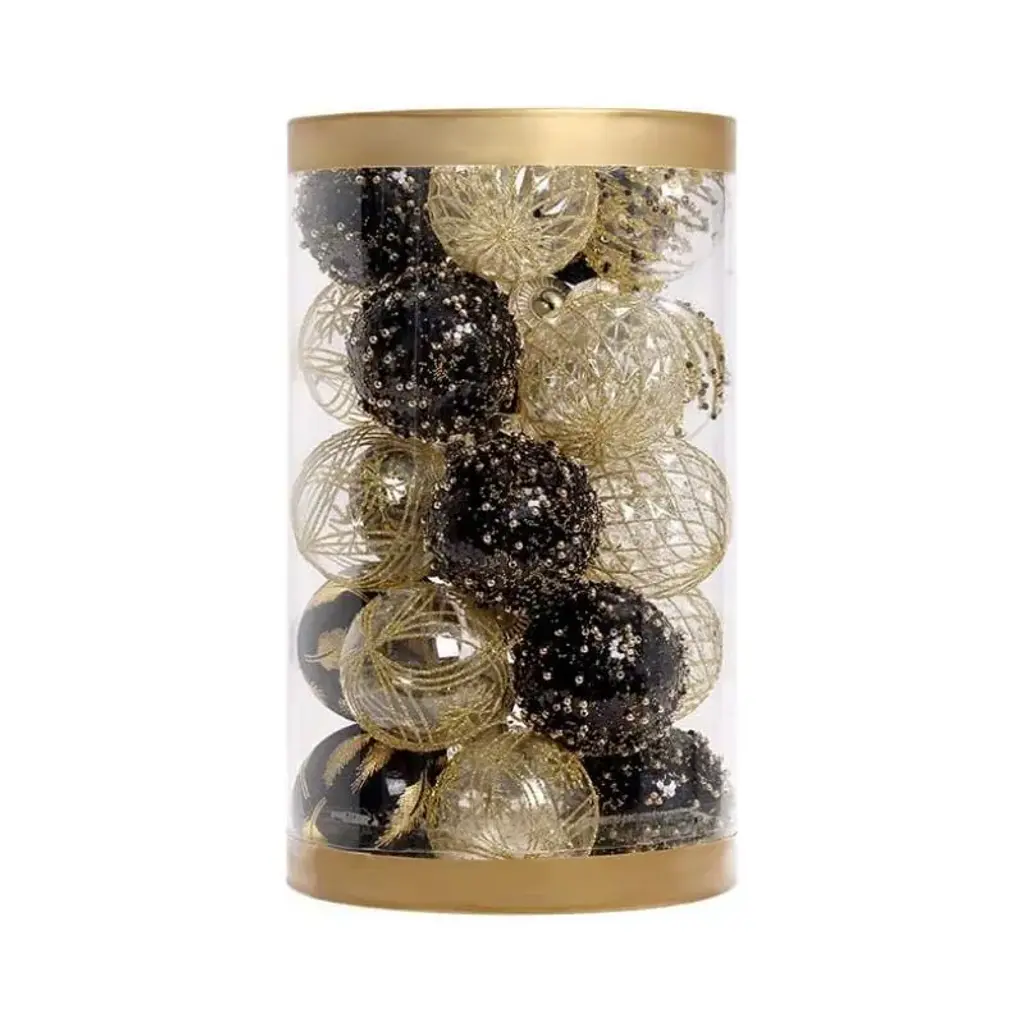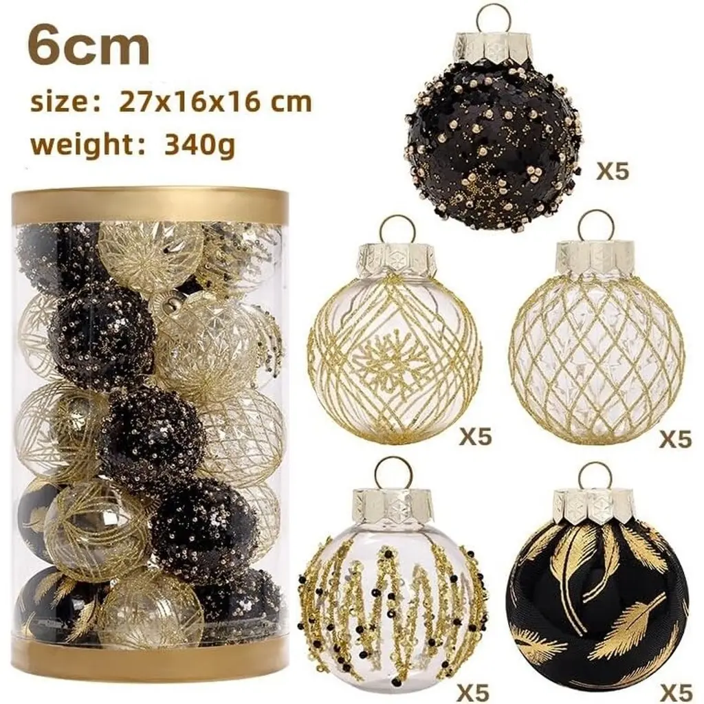 25 Pcs Christmas Tree Ornament Balls, 2.4" Clear Shatterproof - Gold/black