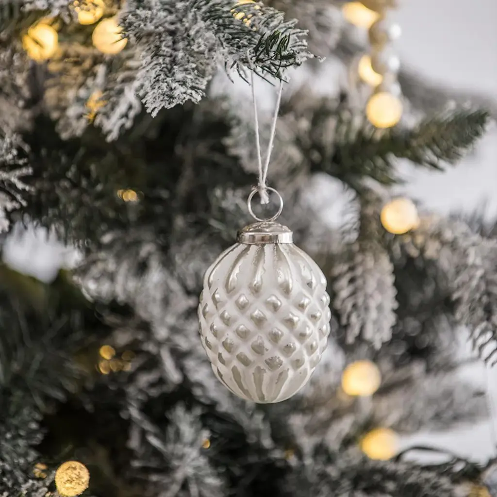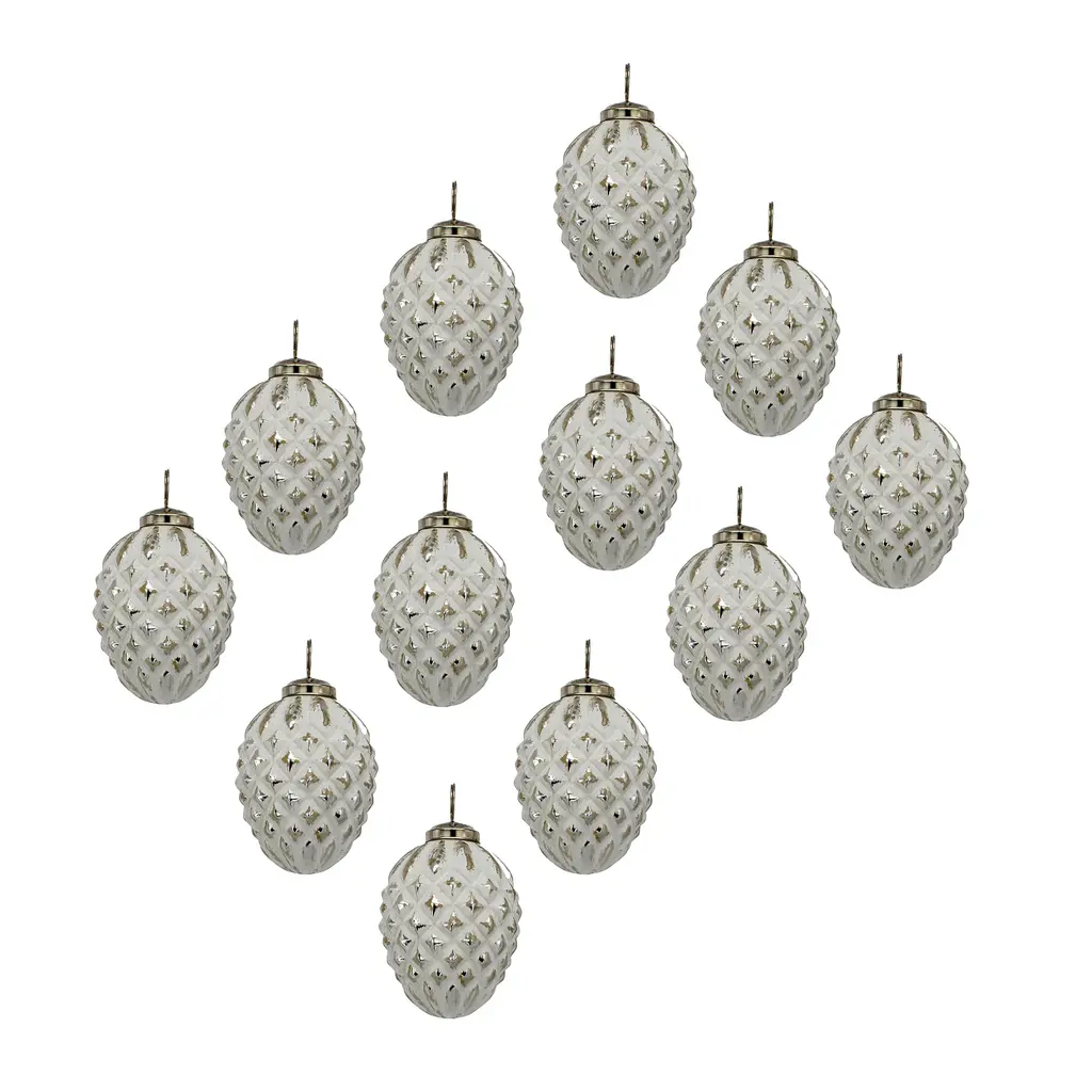 3.5" Rustic White Glass Pinecone Christmas Ornament, Set Of 12