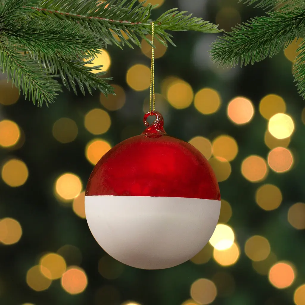 This simple glass ornament will add a pop of color to your holiday collection. The ornament is designed with a shiny red and matte white finish. You can add this to your Christmas tree hang from mantles or give it as a present to that special person on your list. Product Features: Red and white glass ball Christmas ornament. Features shiny red and matte white finishes. Fully dimensional ornament. Attached to a gold string for easy hanging. For indoor use only. Dimensions: 3.5" diameter. Material(s): glass