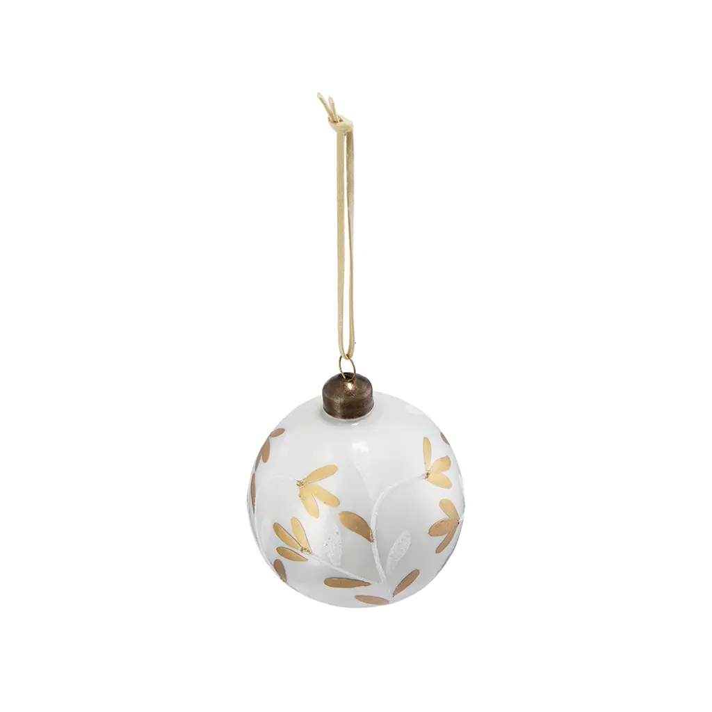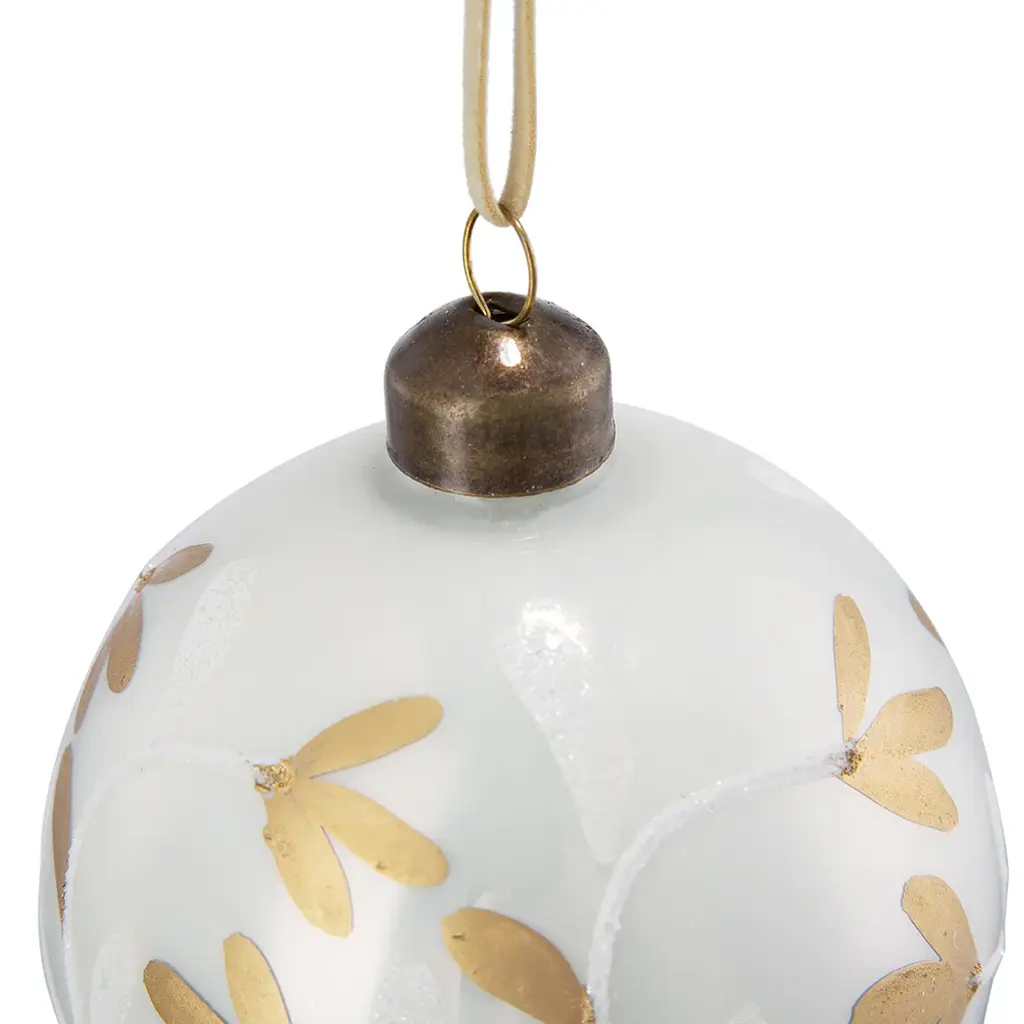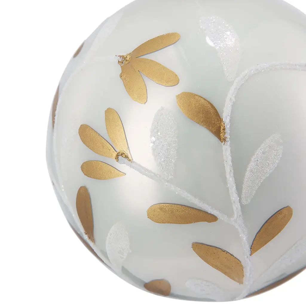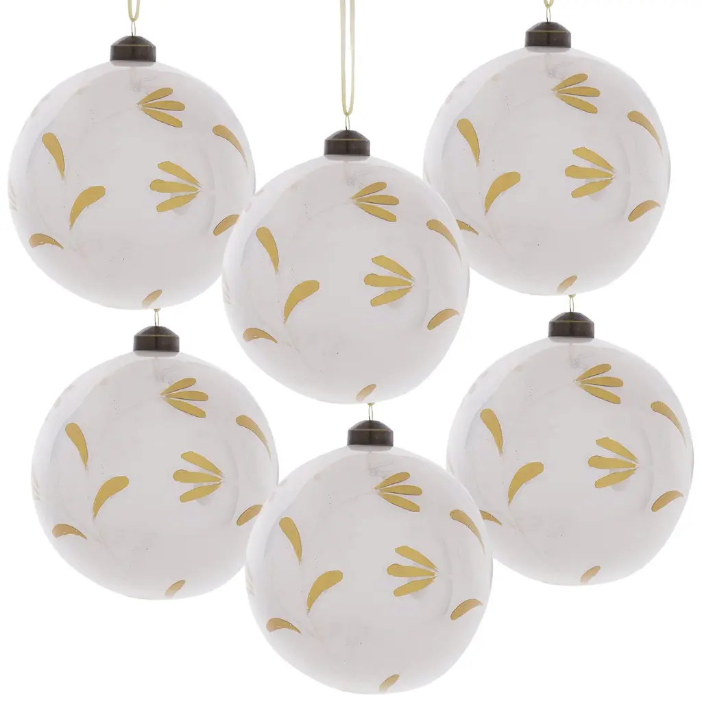 3.9" Ivory And Gold Floral Glass Christmas Ornaments, Set Of 6