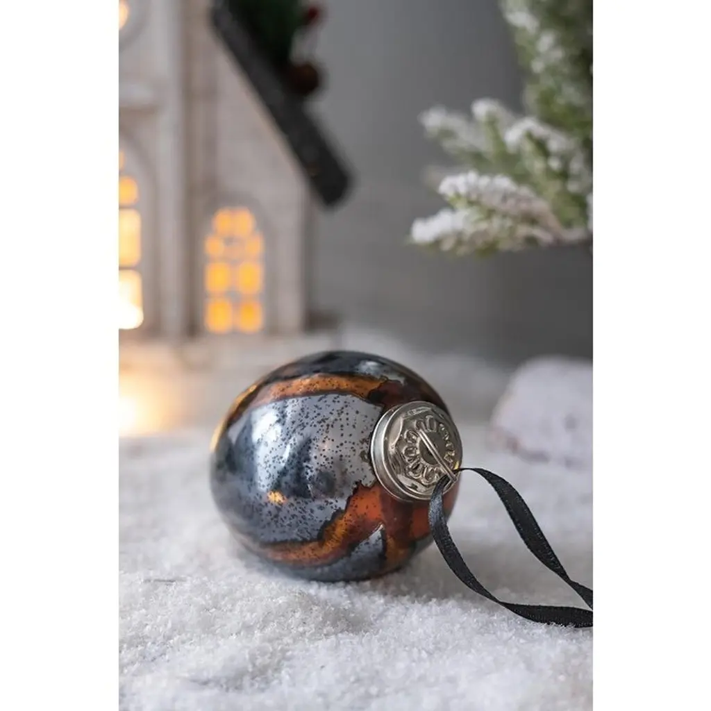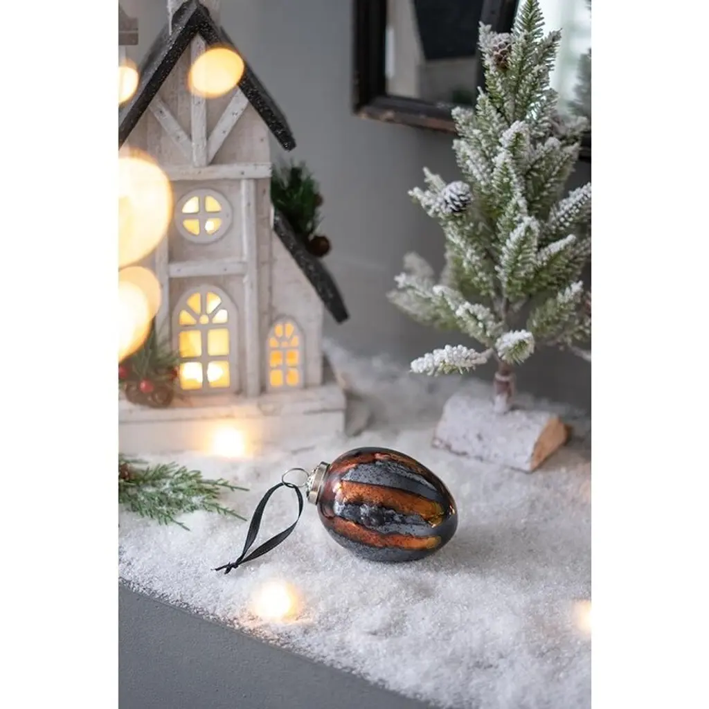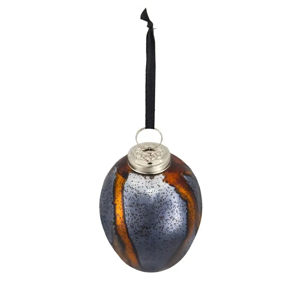 Transforming the classic round bauble into a work of modern art, each piece showcases a sleek egg-like silhouette, a brass cap, and a mesmerizing black and gold colorway, embellished with occasional speckles. Measuring 4"H x 3"D, they are an ideal size to adorn your Christmas tree, create elegant garland displays, or serve as a commanding addition to festive tabletop centerpieces A great gift for those who want to take their seasonal collections to a new level, this set is sure to impress at the next birthday, housewarming, anniversary, or special occasion Product Details: 95% Glass,5% Brass Measurement:3.1x3.1x4.3(Inches)/each Weight:0.1lbs/each