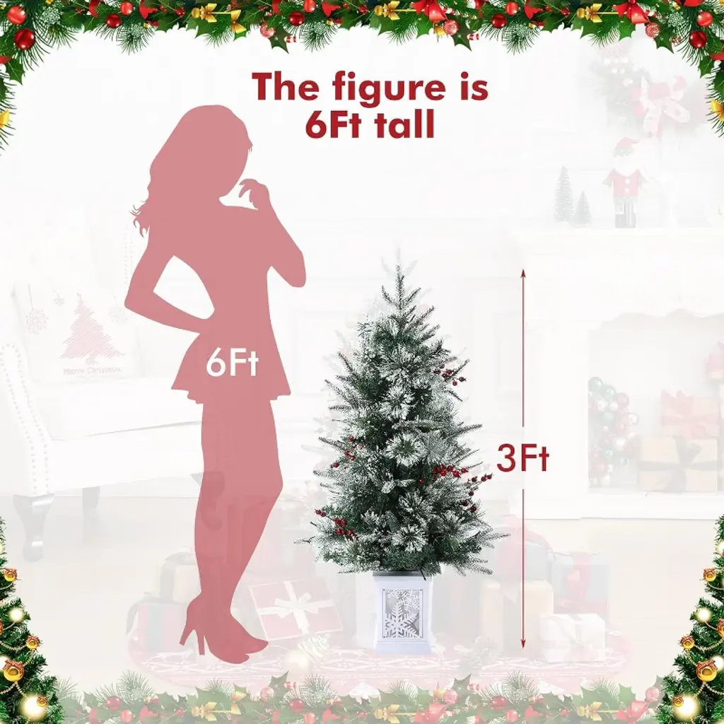 Miniature Design: These small Christmas trees with lights are typically 3 ft tall, suitable for tabletops or compact spaces. They include features like pre-lit LED lights and decorative bases such as snowflake potted bases, offering convenient and charming Christmas decor. Lighting Features: Table top Christmas trees with lights are pre-lit with battery-operated LED lights, often including timer functions (6 hours on/18 hours off). Reliable lighting ensures that if one bulb goes out, others remain illuminated, enhancing festive cheer effortlessly(battery not included). Materials and Construction: Crafted with lifelike PVC or PE branches, these 3 foot Christmas trees often include artificial elements such as berries, pinecones, and snow flocking. Materials are hypo-allergenic and fire-resistant, ensuring safe and realistic decor for the time. Ease of Setup and Storage: Designed for simple setup, these 3ft Christmas trees typically feature hinged that drop down for quick assembling and fold for convenient storage. Plan on spending a few minutes to shape the for a full-bodied look. Versatile Usage: These tabletop Christmas trees are suitable for indoor and covered outdoor use, making them versatile options for home, office, and small business holiday decor. Their compact design allows for placement in various locations. Targeting those with limited space or seeking hassle-free holiday decorating, these mini Christmas tree options are a great choice for adding festive spirit without the complexity of larger tree setups. Perfect for tables, mantles, or desktops in any setting.