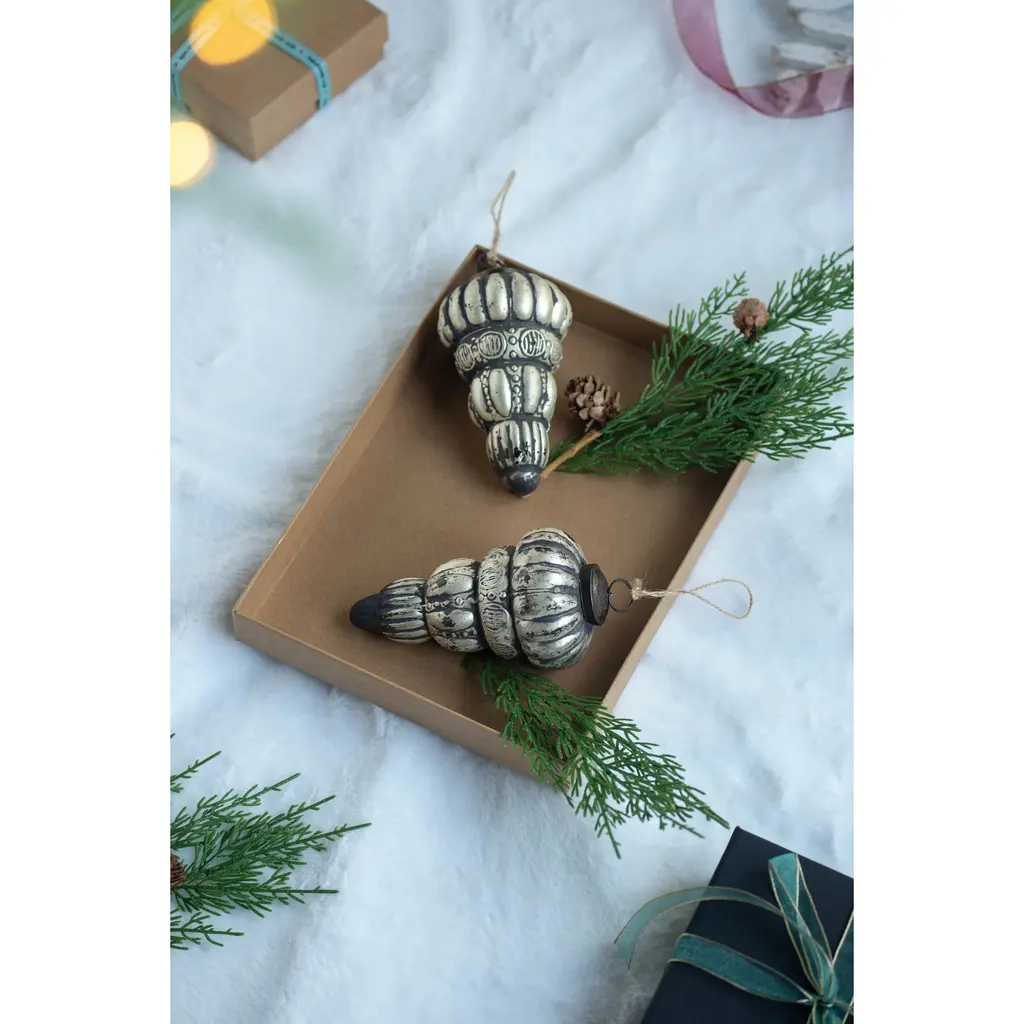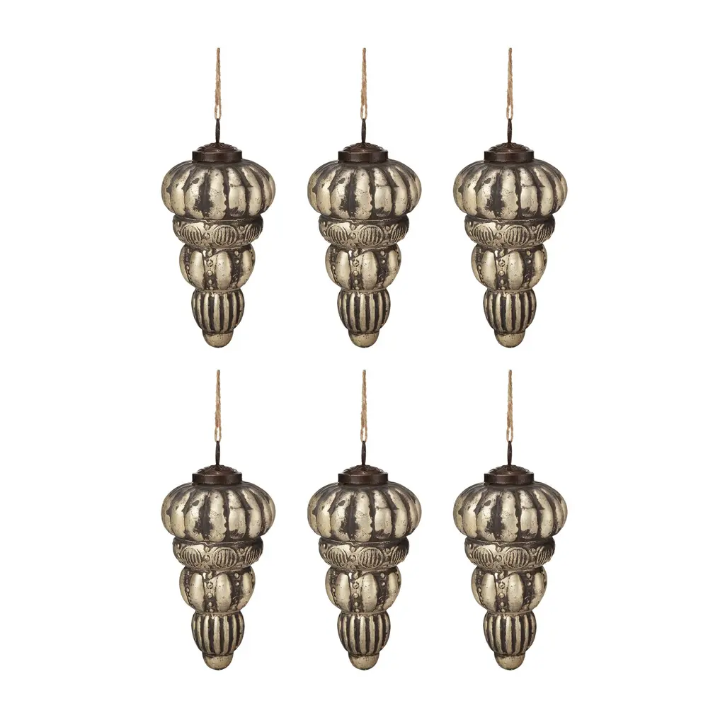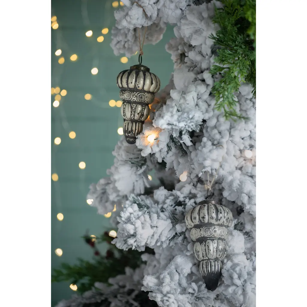 3X3x5.5" Tear Drop Ornament, Glass Decorative Hanging Christmas Tree Ornaments For Holiday Party Decorations, Set Of 6 - Silver