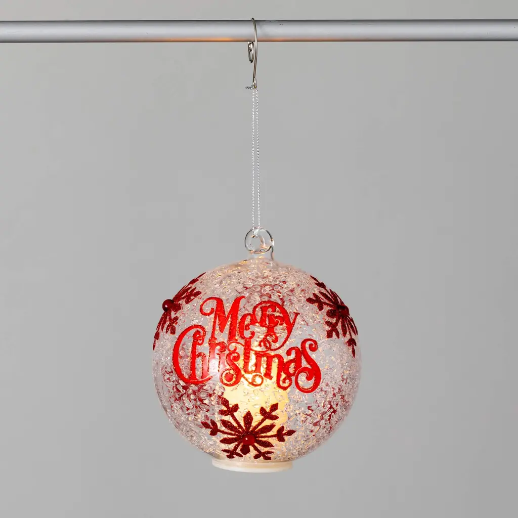 This shiny red ornament captures traditional Christmas with a modern twist. The spherical shape and simple design allow it to fit in with many different styles of decor, while the stylish colors instantly evoke holiday cheer. Perch this ornament atop your tree for a splash of festive color that will catch the eye. Small in size, this compact Christmas sphere makes a charming addition to any collection of traditional ornaments. Porcelain finial-top ornament. • Festive Greeting Design: The Merry Christmas Ball Ornament features a vibrant and cheerful "Merry Christmas" greeting, making it a perfect addition to your collection of Christmas tree ornaments. • Ideal Size for Prominent Display: Measuring 4.5 inches tall, 4 inches wide, and 4 inches long, this ornament is perfectly sized to stand out and make a statement on your Christmas tree. • High-Quality Glass Construction: Crafted from quality glass, this ornament offers durability and a premium look, ensuring it will be a cherished part of your Christmas décor for years to come. • Vibrant Multicolor Appeal: With its multicolor design, this ornament adds a splash of festive color to your Christmas tree décor, enhancing the overall holiday spirit in your home. • Versatile Indoor Christmas Décor: Ideal for Christmas decorations indoor home, this Merry Christmas ball ornament fits seamlessly into any indoor Christmas décor theme, adding a touch of holiday cheer to any setting. • Experience Timeless Elegance with Sullivan's Home Decor - Celebrating Over 55 Years of Excellence! Explore our extensive collection of quality products, meticulously curated to suit every style, season, and occasion. From classic designs to on-trend accents, Sullivan's Home Decor seamlessly blends tradition with modernity, ensuring there's something special for everyone. Transform your living spaces with our enduring commitment to style and sophistication. • Ornament measures 4"L x 4"W x 4.5"H