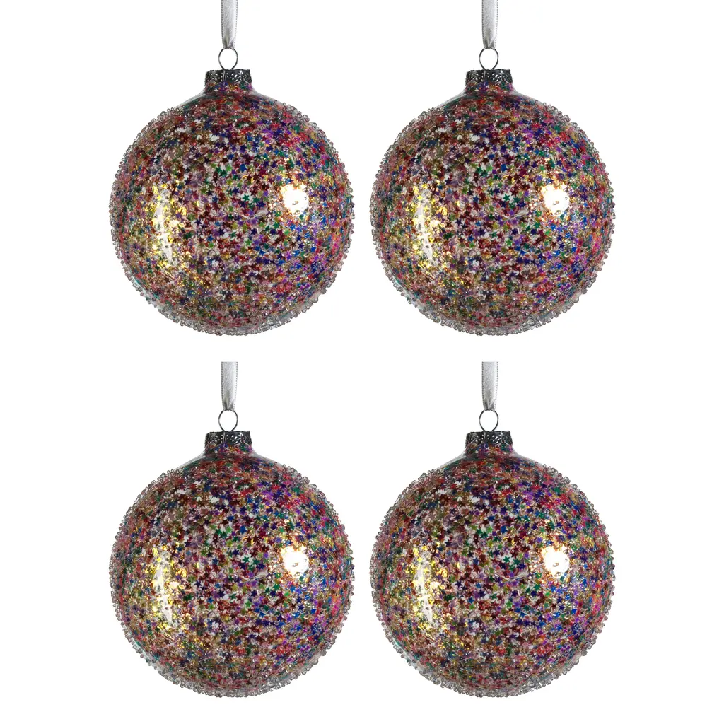4.75" Multi-Bright Confetti Glass Ball Ornaments, Set Of 4 - Glass - Multi