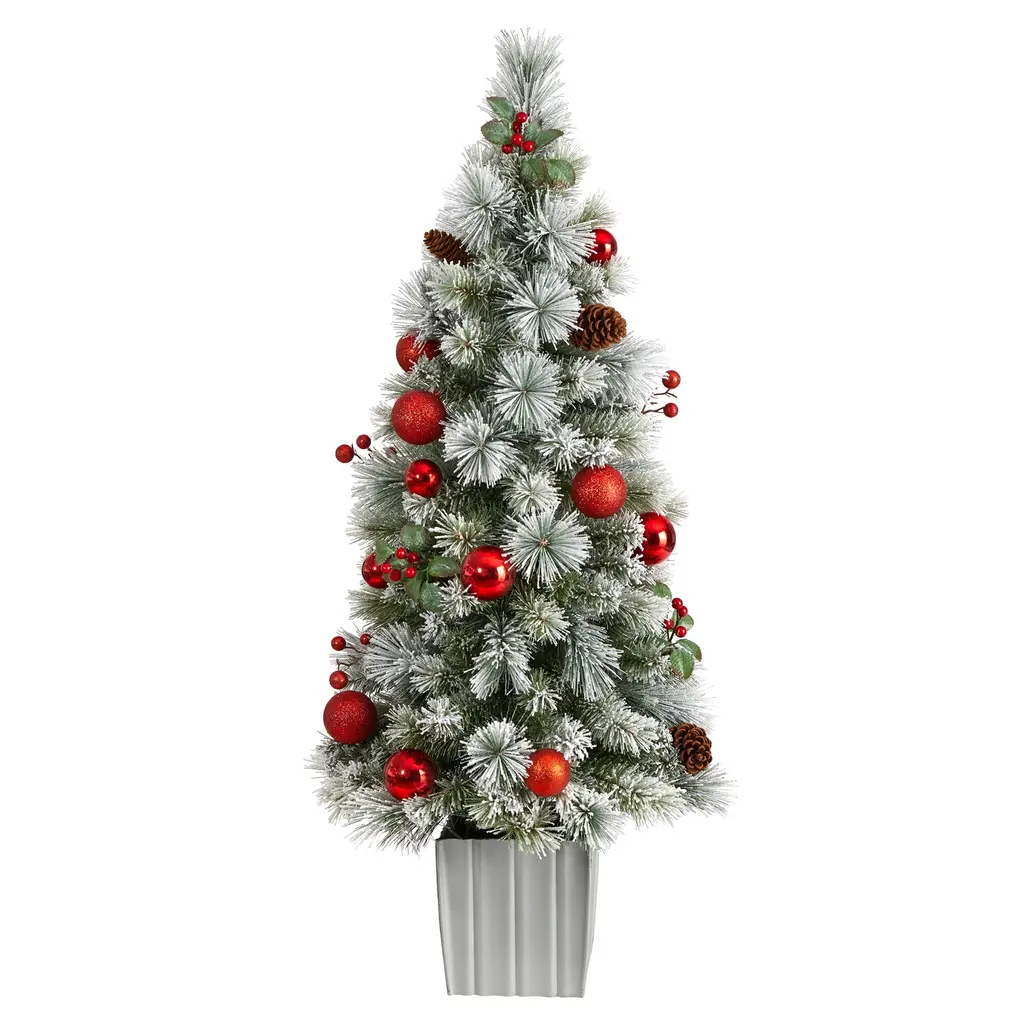 Specification:Description:Want to save the hassle of decorating the Christmas tree? This Christmas tree is ready to be displayed. Inspired by nature, this silhouette mimics the natural real foliage and texture of the real ones. Arriving pre-strung with 50 LED lights for a warm, candle-like glow – this cute artificial Christmas tree also comes dressed from top to bottom with ornaments and pinecones, saving you time and money. Standing 4' from a decorative planter (included in height), house in a compact area. Feel free to showcase this holiday ready tree.