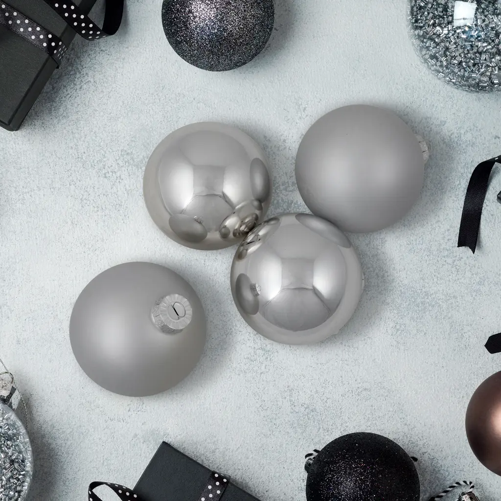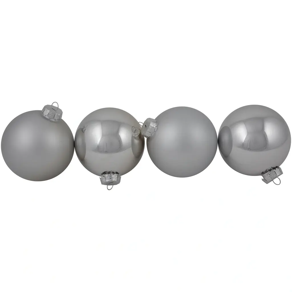 4Ct Shiny And Matte Silver Glass Ball Christmas Ornaments 4" (100mm) - Silver