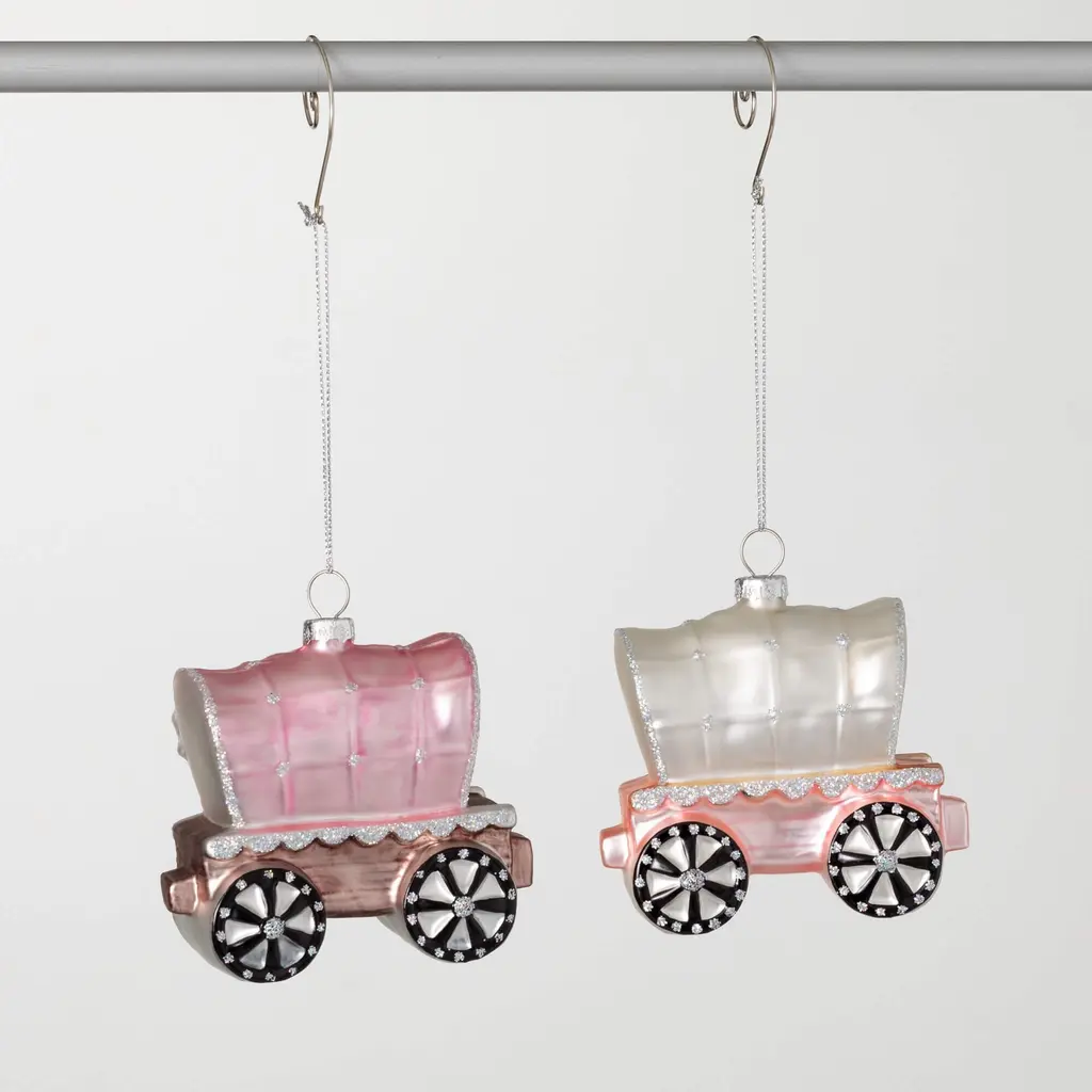 4"h Sullivans Christmas Pink Wagon Train Ornaments Set Of 2, Multicolor - Glass - Multi