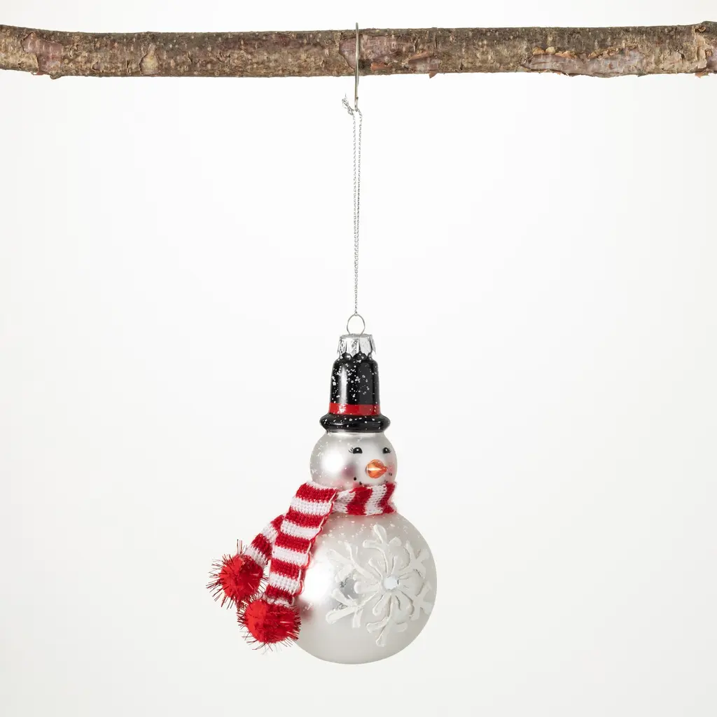 This classic snowman will add to your holiday decor. Pull him out yearly to add a nostalgic wintery feeling. Over the last 55 years, Sullivans has become an industry leader in home decorations. Our brand is rooted in tradition while incorporating modernized trends to keep your home looking up to date with timeless style. Here at Sullivans, we pride ourselves on creating product designs focused on quality and value, ensuring that our customers have access to beautiful products at reasonable price points. • Enhance your Christmas tree with this exquisite Christmas ornament, designed to add a touch of elegance and charm to your holiday decor. • Crafted with utmost care, this ornament is made of high-quality glass, ensuring durability and longevity. Each ornament is meticulously designed to withstand the test of time, becoming cherished keepsakes for years to come. • Not limited to just Christmas trees, these ornaments can be used creatively on wreaths, garlands, or as captivating Christmas centerpiece table decorations, allowing you to extend the holiday spirit throughout your home. • Delicate and captivating, this Christmas ornament features a stunning pearly white hue, adding a timeless elegance to your festive decorations. The lustrous finish beautifully catches the light, creating an enchanting ambiance in any setting. • Adorn your tree with the delightful charm of our snowman-shaped ornament, complete with a top hat and scarf. It's whimsical design brings joy and a touch of nostalgia to your Christmas celebrations, making it perfect for both children and adults alike. • This item is made of glass • Ornament measures 3"L x 2.75"W x 5.25"H