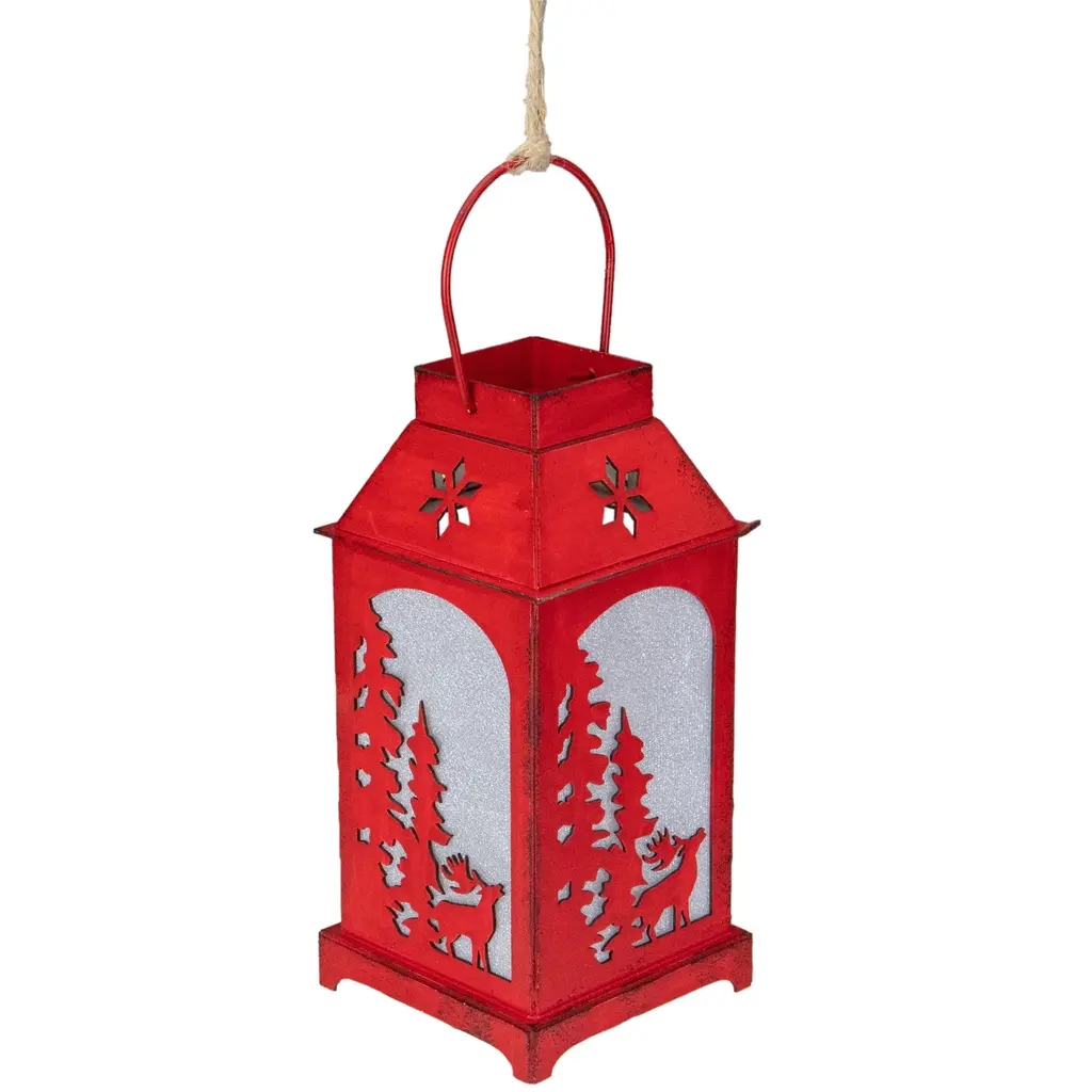 Bring in the outdoors to your holiday decor with this battery operated lantern ornament. Features a paper lantern with a reindeer silhouette and 4 panels for a great lighting experience. The perfect choice for adding unique lighting to your tree. Product Features: Fully dimensional ornament. This lantern is red in color. It has 4 panels with a handle on top. Requires (1) LR44/AG13 battery included. Dimensions: 5.5"H x 2.5"W x 2.5"L. Materials: cardstock/plastic/metal