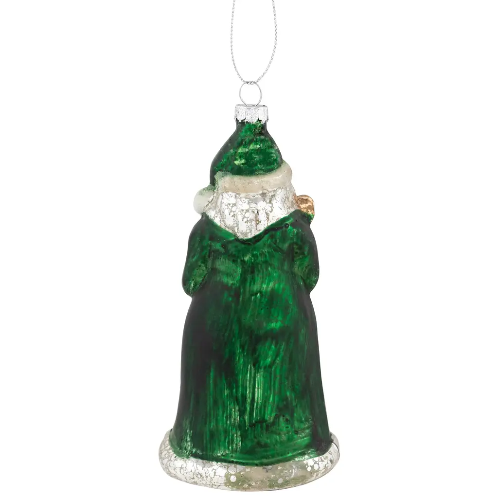 5.5" Nordic Green And Gray Santa Hanging Glass Christmas Ornament - Green