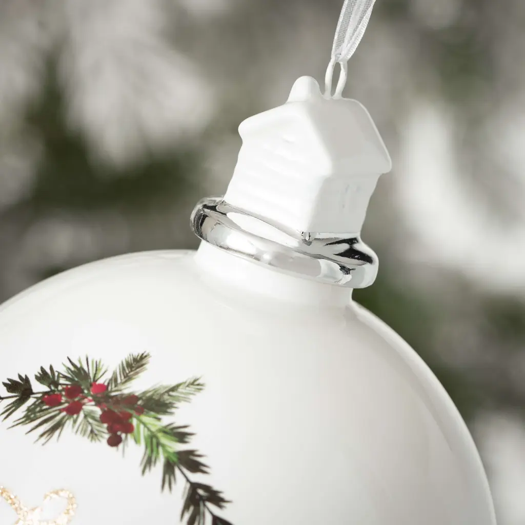 Perfect for someone just beginning to make memories in a new place whether they're celebrating their first home purchase, a new apartment, or a fresh start, this ornament captures the spirit of new beginnings and the hope of making new memories in the years to come. This white ball ornament features sentimental text and glitter, perfect for a celebration. Hang it up as a reminder that every new chapter in life brings opportunity for growth and happiness - a sentiment that's especially meaningful for those starting fresh in a new place they can call home. Porcelain finial-top ornament. Giftable ornament. • Charming Housewarming Design: Welcome the holiday season with our Housewarming Ball Ornament, featuring a delightful multicolor pattern that adds warmth to your Christmas décor. • Ideal Size: Standing at 5.5 inches tall, 4 inches wide, and 4 inches long, this ornament is large enough to make a statement on your Christmas tree or as part of your indoor holiday decorations. • Premium Glass Construction: Crafted from high-quality glass, this ornament boasts durability and a glossy finish, ensuring it remains a cherished part of your holiday collection for years to come. • Versatile Decoration: Whether hung on your Christmas tree, displayed in a festive centerpiece, or used as a mantle decoration, this ornament brings joy to any indoor holiday setting. • Create a Festive Atmosphere: Elevate your Christmas décor with this versatile ornament that complements any theme or style, making it perfect for both traditional and modern interiors. Celebrate the season with this stunning addition to your ornaments collection! • Experience Timeless Elegance with Sullivan's Home Decor - Celebrating Over 55 Years of Excellence! Explore our extensive collection of quality products, meticulously curated to suit every style, season, and occasion. From classic designs to on-trend accents, Sullivan's Home Decor seamlessly blends tradition with modernity, ensuring there's something special for everyone. Transform your living spaces with our enduring commitment to style and sophistication. • Ornament measures 4"L x 4"W x 5.5"H