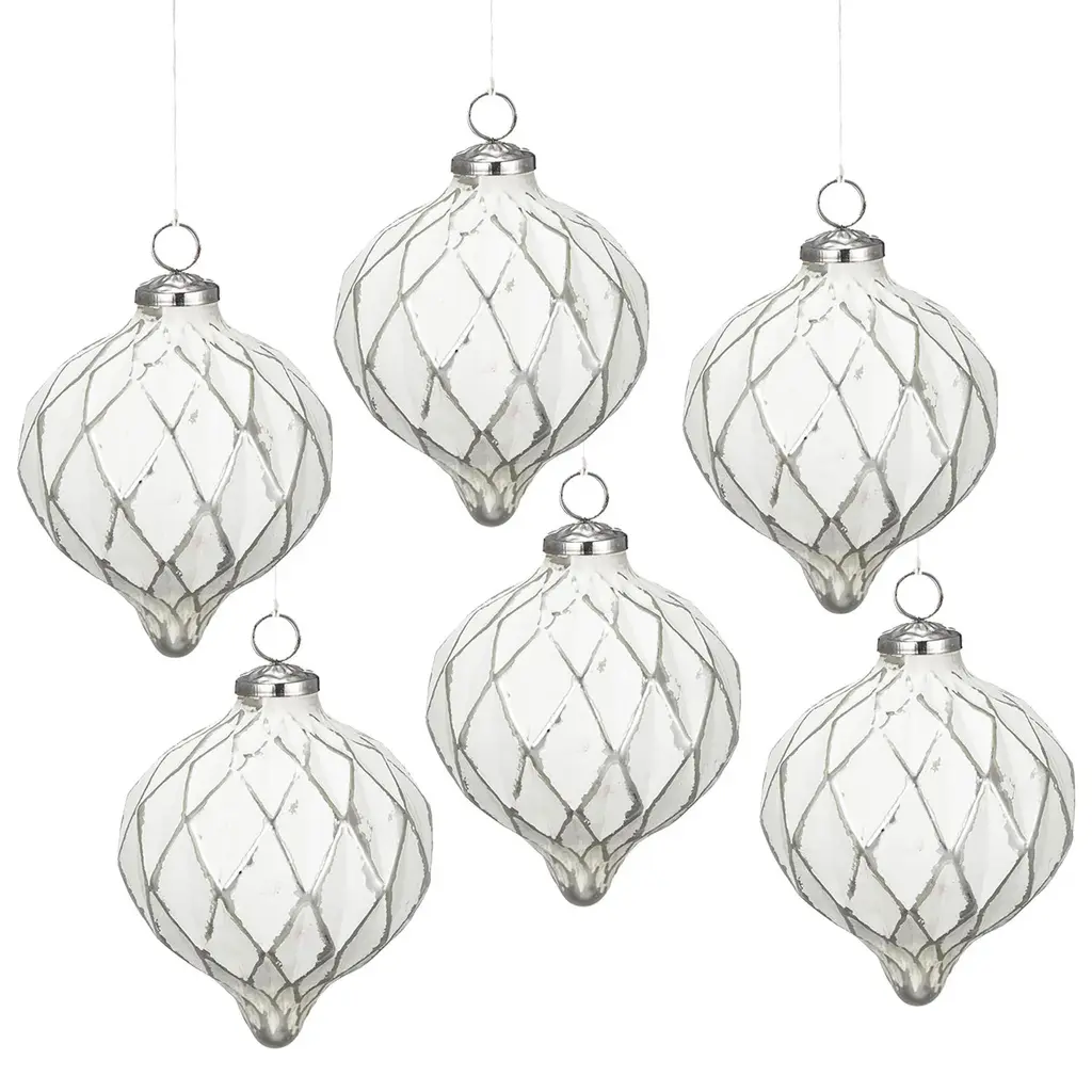 5.7" Rustic White Finial Drop Christmas Ornaments, Set Of 6