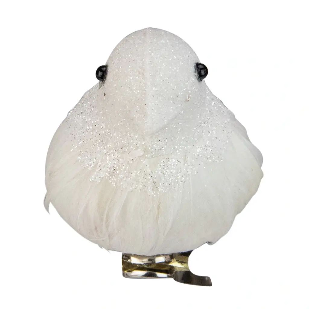 5" Sparkly White Bird Clip-On Christmas Ornament - White