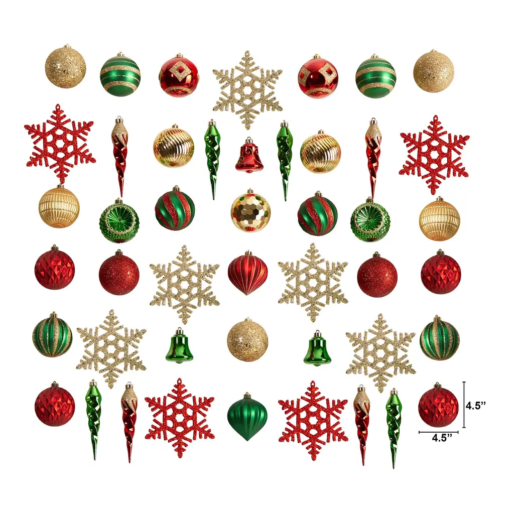 50 Pcs Shatterproof Ornament Set - 4.5 In. (H) X 4.5 In. (W) X 4.5 In. (D) - Multi