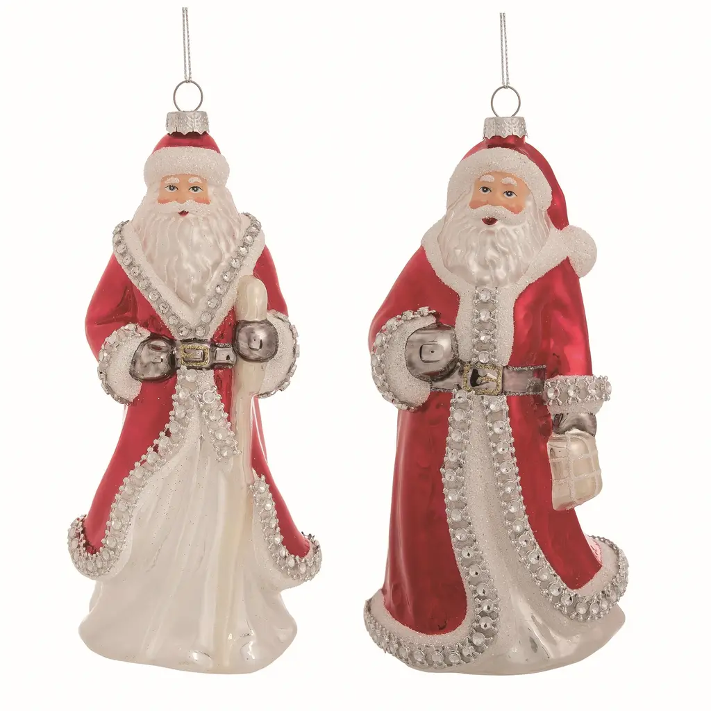 These whimsical Santa Christmas ornaments are exclusive to Sullivans Home Decor. The set of two ornamental Santas wear traditional cowboy hats and vests for a fun Western twist that will bring chuckles during the holiday season. Add these exclusive Santas to your collection of western decor and spread some yuletide cheer, y'all! • Rustic Charm: Add a touch of the Wild West to your holiday décor with our Western Santa Ornaments, featuring iconic Santa figures adorned in cowboy attire for a festive frontier flair. • Perfect Dimensions: These ornaments measure 6.25 inches tall, 1.25 inches wide, and 2 inches long, making them ideal for showcasing on your Christmas tree or incorporating into your ornaments set. • Premium Quality: Crafted from high-quality glass, these ornaments boast durability and intricate detailing, ensuring they become cherished keepsakes for generations to come. • Versatile Display: Whether hung on the tree, placed on a mantel, or used as part of a festive centerpiece, these Western Santa Ornaments bring holiday cheer to any indoor Christmas setting. • Classic Color Scheme: The timeless combination of red and white captures the traditional spirit of Christmas, while the cowboy-inspired design adds a unique twist that will delight guests and family alike. • Experience Timeless Elegance with Sullivan's Home Decor - Celebrating Over 55 Years of Excellence! Explore our extensive collection of quality products, meticulously curated to suit every style, season, and occasion. From classic designs to on-trend accents, Sullivan's Home Decor seamlessly blends tradition with modernity, ensuring there's something special for everyone. Transform your living spaces with our enduring commitment to style and sophistication. • Ornaments measure 2"L x 1.25"W x 6.25"H