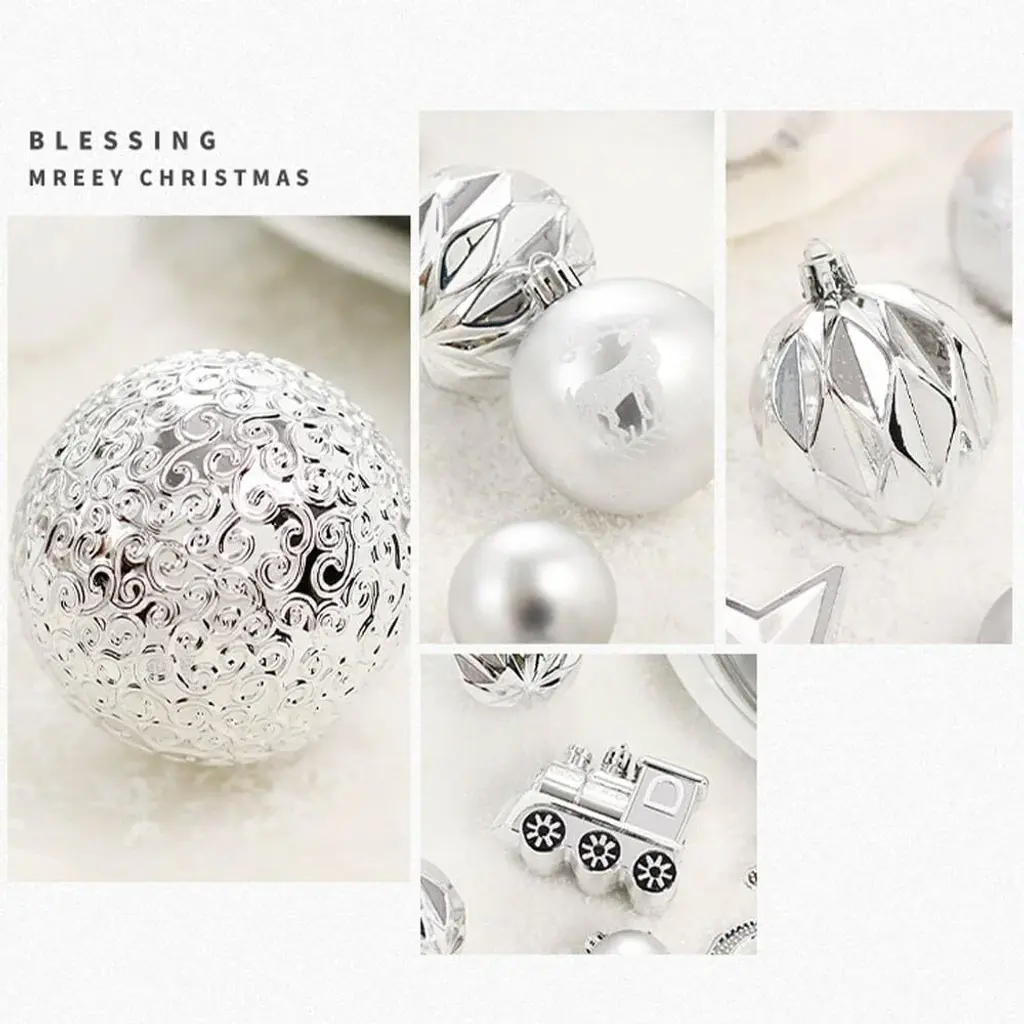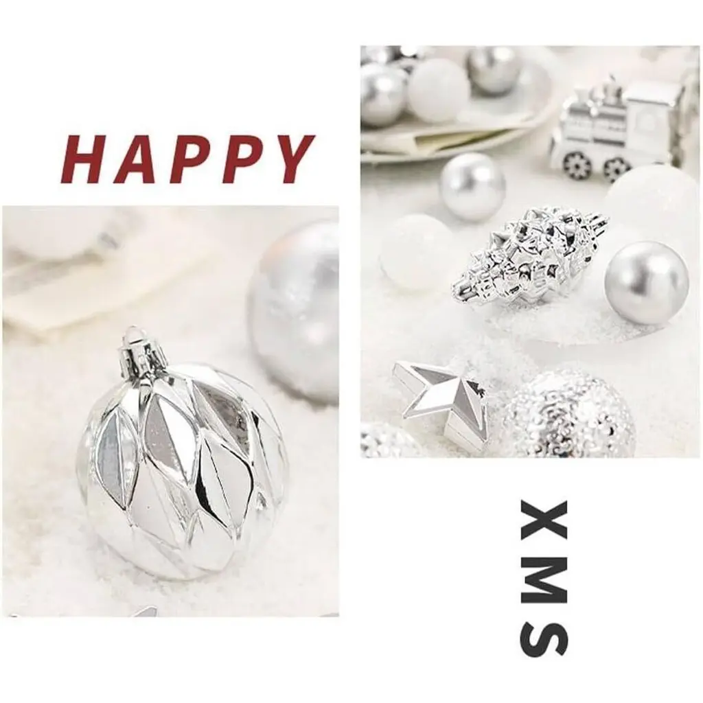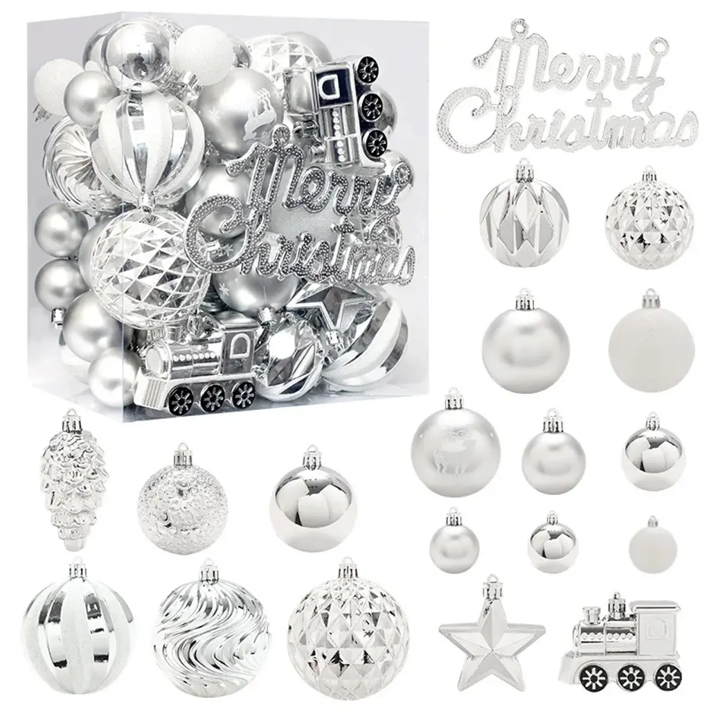 Superior Shatterproof Quality: Each of the 64 Christmas ornaments is made from high-quality shatterproof plastic, ensuring that they are durable and resistant to damage. This quality allows them to maintain their festive look, season after season, without the worry of breakage. Diverse and Festive Selection: This set includes a variety of 64 ornaments in different shapes, along with a cheerful "Merry Christmas" sign. The assortment provides ample decorative options, allowing you to easily create a lively and personalized holiday display on your Christmas tree. Kid and Pet Friendly: The shatterproof nature of these ornaments makes them a safer alternative to traditional glass ornaments. Families with children and pets can decorate worry-free, as these ornaments eliminate the risk of injury from broken glass. Effortless Hanging: Each ornament features a convenient string for easy hanging, making the decorating process quick and straightforward. Their versatility allows them to be used not only for Christmas trees but also for weddings, anniversaries, and other holiday events. Built to Endure: Engineered to withstand falls from heights of up to 2 meters onto hard surfaces, these ornaments are exceptionally durable. Their robust construction ensures that they remain intact and visually appealing, making them ideal for households with energetic children and pets during the festive season.