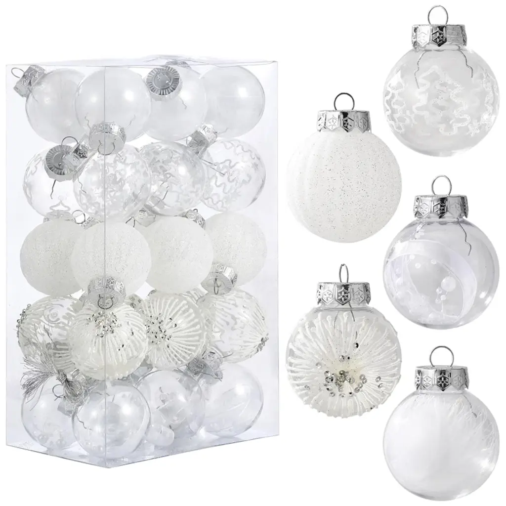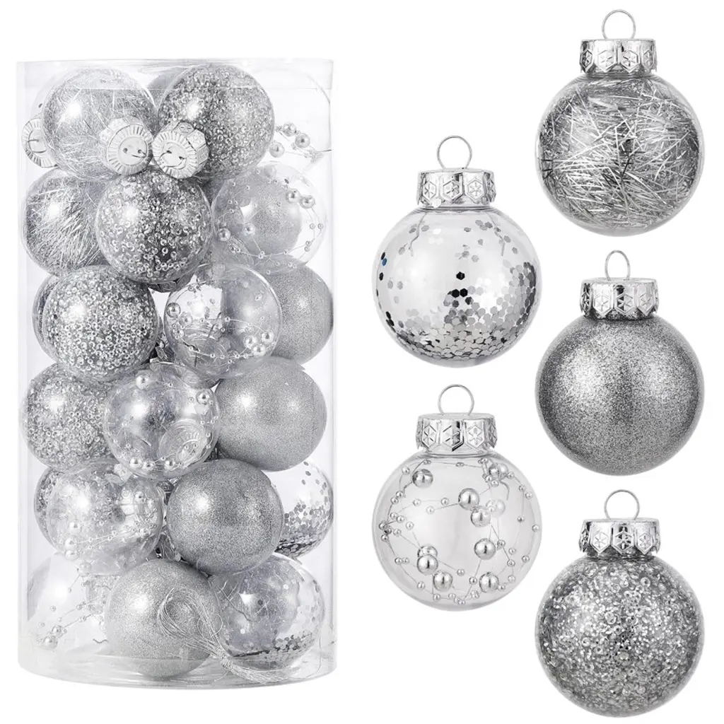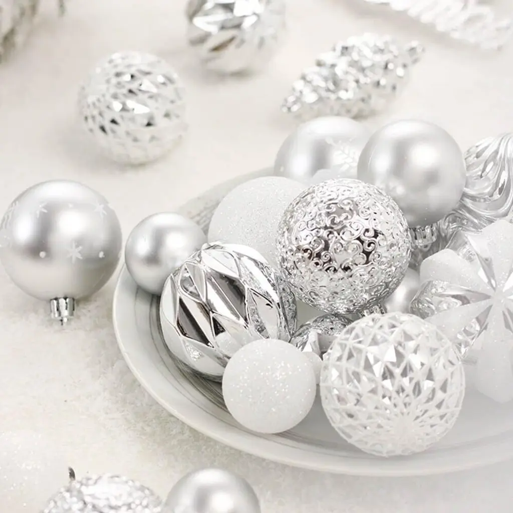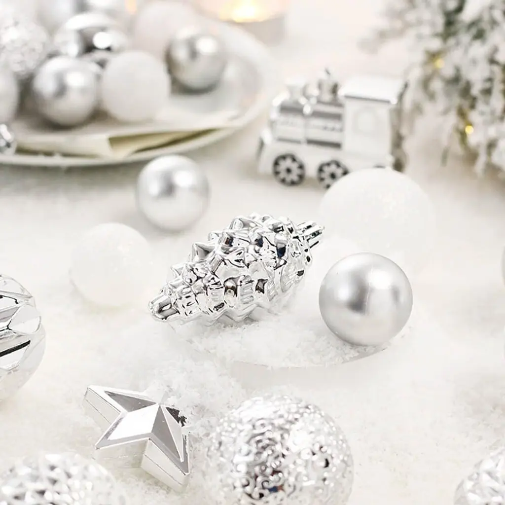 Superior Shatterproof Quality: Each of the 64 Christmas ornaments is made from high-quality shatterproof plastic, ensuring that they are durable and resistant to damage. This quality allows them to maintain their festive look, season after season, without the worry of breakage. Diverse and Festive Selection: This set includes a variety of 64 ornaments in different shapes, along with a cheerful "Merry Christmas" sign. The assortment provides ample decorative options, allowing you to easily create a lively and personalized holiday display on your Christmas tree. Kid and Pet Friendly: The shatterproof nature of these ornaments makes them a safer alternative to traditional glass ornaments. Families with children and pets can decorate worry-free, as these ornaments eliminate the risk of injury from broken glass. Effortless Hanging: Each ornament features a convenient string for easy hanging, making the decorating process quick and straightforward. Their versatility allows them to be used not only for Christmas trees but also for weddings, anniversaries, and other holiday events. Built to Endure: Engineered to withstand falls from heights of up to 2 meters onto hard surfaces, these ornaments are exceptionally durable. Their robust construction ensures that they remain intact and visually appealing, making them ideal for households with energetic children and pets during the festive season.