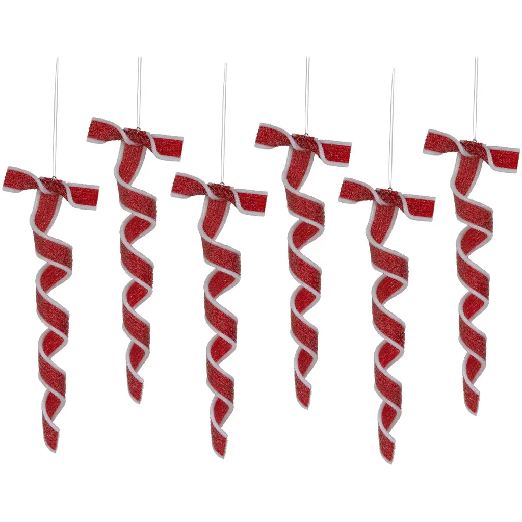 6Ct Frosted Red And White Candy Twist Christmas Ornaments 9" - Plastic - Red