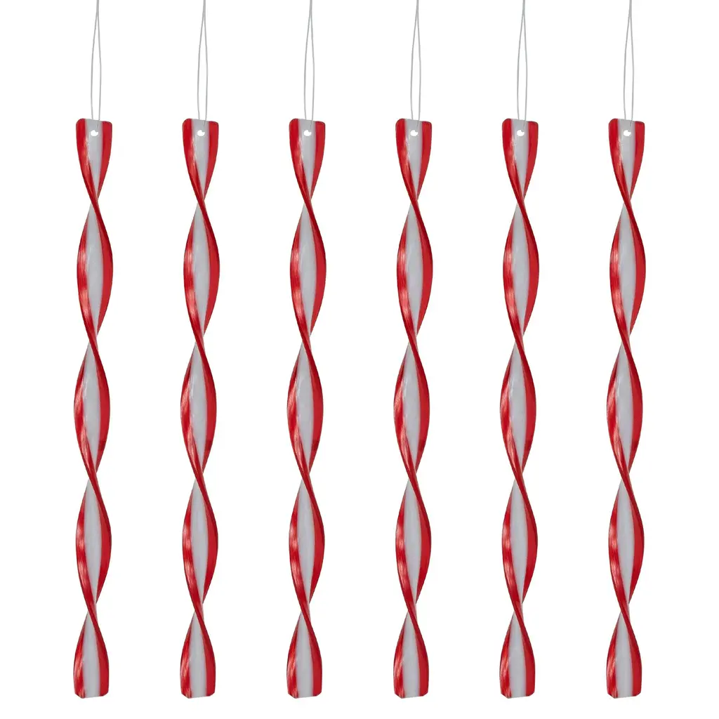 6Ct Red And White Candy Swirl Christmas Ornaments 8" - Plastic - Red