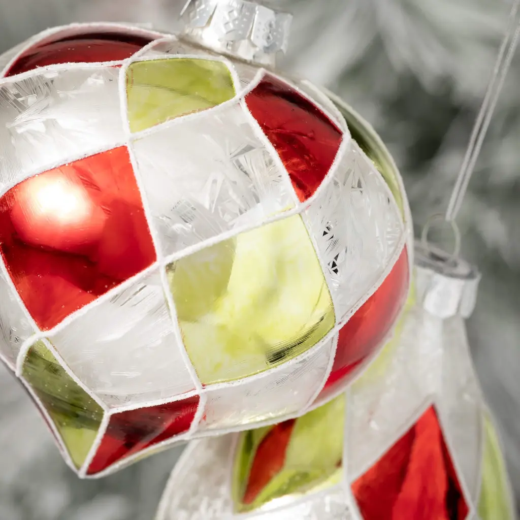 These exclusive checkered ornaments from Sullivans Home Decor will add festive cheer to your Christmas decor. The set of two retro-looking ornaments feature a playful red, green and white checkered design that is jolly and classic for the holiday season. Whether you prefer a traditional decor or a more eclectic style, these exclusive ornaments are sure to add a pop of color and nostalgic charm to your holiday decorating. • Classic Checkered Design: Elevate your holiday décor with the timeless appeal of the Checkered Ornament Set, featuring charming multicolor checkered patterns that add a festive touch to any Christmas tree. • Perfect Size: With dimensions of 4.25 inches tall, 4 inches wide, and 4 inches long, these ornaments strike the perfect balance between size and elegance, making them ideal for showcasing on your tree or as standalone decorations. • Durable Glass Construction: Crafted from high-quality glass, these ornaments are built to last, ensuring that they withstand the wear and tear of holiday seasons and become cherished keepsakes for years to come. • Vibrant Multicolor Palette: The vibrant hues of the multicolor checkered design inject energy and vibrancy into your indoor Christmas décor, creating a festive atmosphere that delights both children and adults alike. • Complete Set: This set includes multiple ornaments, providing you with a cohesive collection to adorn your tree or decorate your home with a unified theme. Add a touch of traditional charm to your holiday celebrations with this delightful ornament set. • Experience Timeless Elegance with Sullivan's Home Decor - Celebrating Over 55 Years of Excellence! Explore our extensive collection of quality products, meticulously curated to suit every style, season, and occasion. From classic designs to on-trend accents, Sullivan's Home Decor seamlessly blends tradition with modernity, ensuring there's something special for everyone. Transform your living spaces with our enduring commitment to style and sophistication. • Ornaments measure 4"L x 4"W x 4.25"H, 3.25"L x 3.25"W x 6"H