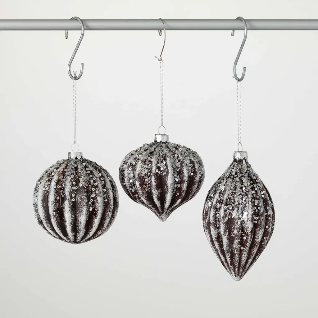 6"h Sullivans Christmas Modern Finial Ornaments Set Of 3, Multicolor - Glass - Multi