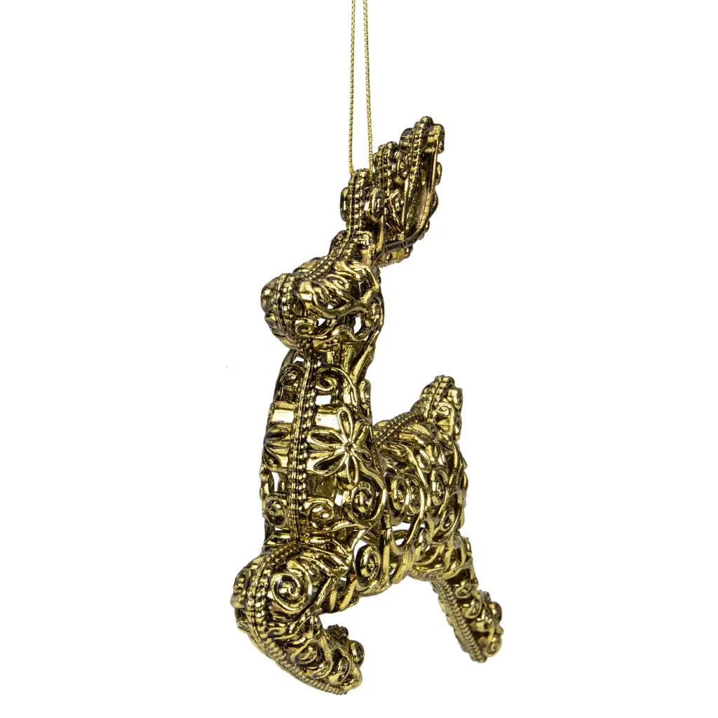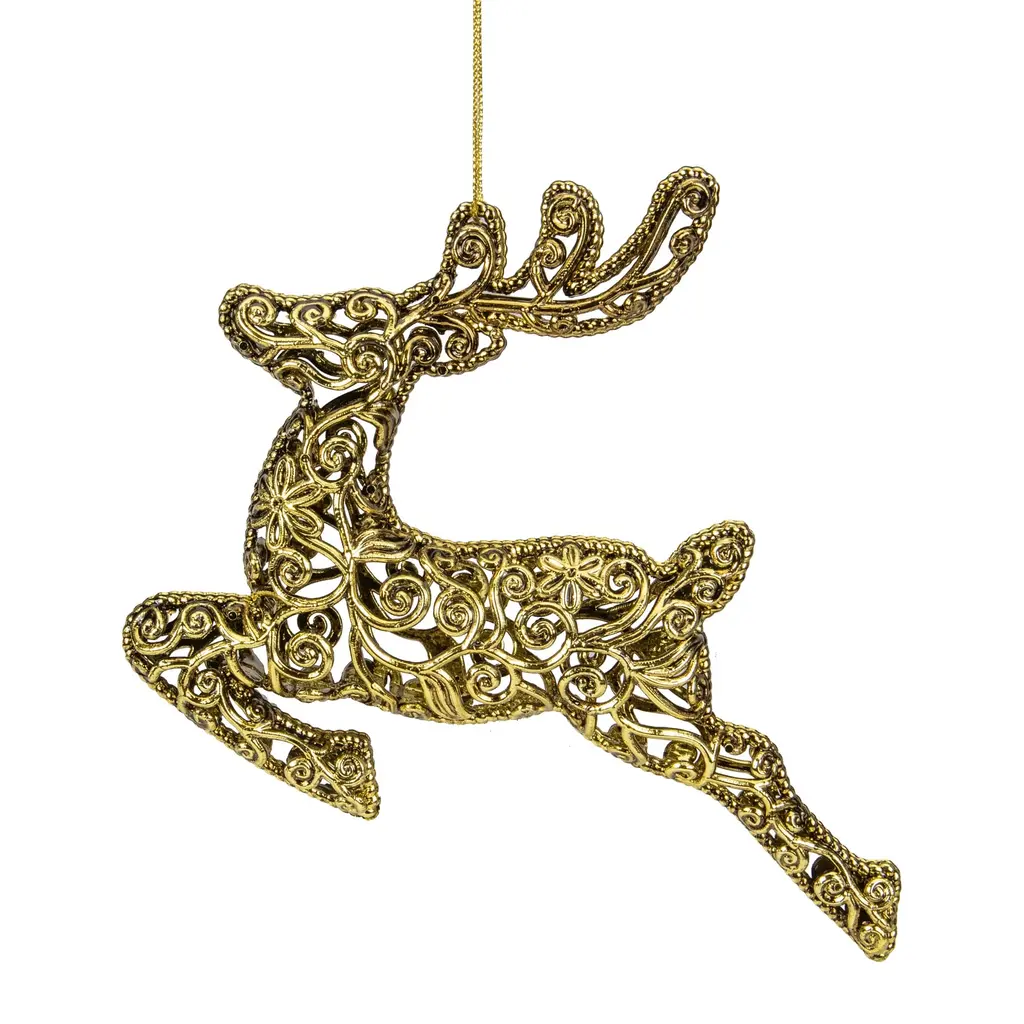 7" Gold Filigree Style Leaping Reindeer Christmas Ornament - Gold