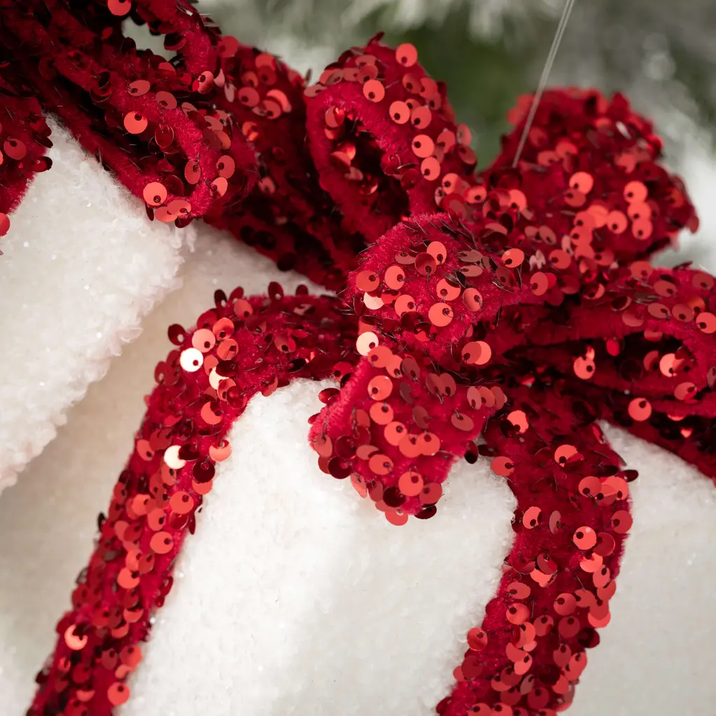 These festive red glitter ornaments will add a touch of whimsy and magic to your Christmas decor. These two simple ornaments feature white packages tied with red glitter bows, adding the right accent of festive cheer. Whether you're decorating a traditional tree or a modern minimalist display, these affordable ornaments will infuse your space with effortless holiday style. • Eye-Catching Design: Add a festive touch to your holiday decor with our Red Glitter Gift Ornaments, featuring vibrant red and white colors accented with sparkling glitter for a dazzling effect. • Generous Size: Each ornament in this set measures an impressive 10 inches tall, 5 inches wide, and 5 inches long, making them perfect for creating a bold statement on your Christmas tree or as standalone decorations. • Quality Polyester Construction: Crafted from high-quality polyester, these ornaments are durable and lightweight, ensuring long-lasting beauty and easy hanging. • Sparkling Red and White: The classic red and white color combination, enhanced with shimmering glitter, adds a festive flair to your holiday display, creating a cheerful atmosphere in your indoor spaces. • Versatile Decorating Options: Hang these glittering gift ornaments on your Christmas tree, wreaths, or garlands, or use them as tabletop accents to infuse your home with holiday cheer and charm. • Experience Timeless Elegance with Sullivan's Home Decor - Celebrating Over 55 Years of Excellence! Explore our extensive collection of quality products, meticulously curated to suit every style, season, and occasion. From classic designs to on-trend accents, Sullivan's Home Decor seamlessly blends tradition with modernity, ensuring there's something special for everyone. Transform your living spaces with our enduring commitment to style and sophistication. • Ornaments measure 5"L x 5"W x 10"H, 5"L x 5"W x 7"H