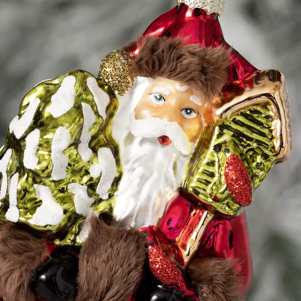 This rustic Santa ornament brings a cozy cabin charm to your Christmas decor. Adorned with a fur-lined cloak that evokes images of a snowy winter's night, this large, handcrafted ornament features Santa in an Olde World style. Simply hang it on your tree or mantle and instantly transform your holiday decor into a wintry wonderland straight out of a Christmas storybook. • Generous Size: Standing at a festive 7 inches tall, with a width and length of 3 inches each, this rustic Santa ornament makes a bold statement on any Christmas tree or indoor display. • Artisan Craftsmanship: Crafted from high-quality glass, each ornament is meticulously designed to capture the charm and whimsy of the holiday season. • Vibrant Colors: The multicolor palette adds a playful touch to your Christmas décor, infusing your home with warmth and festive cheer. • Versatile Décor: Whether hung on the tree, placed on mantels, or used as tabletop accents, these Santa ornaments instantly elevate your indoor Christmas decorations. • Timeless Charm: With its classic design and attention to detail, this ornament brings nostalgic holiday vibes to any space, making it a cherished addition to your seasonal décor collection. • Experience Timeless Elegance with Sullivan's Home Decor - Celebrating Over 55 Years of Excellence! Explore our extensive collection of quality products, meticulously curated to suit every style, season, and occasion. From classic designs to on-trend accents, Sullivan's Home Decor seamlessly blends tradition with modernity, ensuring there's something special for everyone. Transform your living spaces with our enduring commitment to style and sophistication. • Ornament measures 3"L x 3"W x 7"H