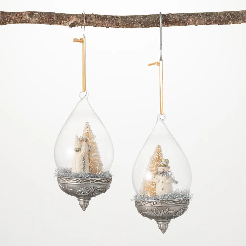 Immerse yourself with the feeling of Christmas. This Santa and snowman ornaments are encased with a delicate clear globe to enhance the true meaning of Christmas. With detail and craftsmanship, these are ideal to hang anywhere around the house! A Sullivans exclusive. Over the last 55 years, Sullivans has become an industry leader in home decorations. Our brand is rooted in tradition while incorporating modernized trends to keep your home looking up to date with timeless style. Here at Sullivans, we pride ourselves on creating product designs focused on quality and value, ensuring that our customers have access to beautiful products at reasonable price points. • Enhance your holiday spirit with our exquisite set of 2 Christmas tree ornaments, beautifully crafted to add a touch of elegance to your festive décor. • Our resin Christmas ornaments are not only visually stunning but also exceptionally durable, ensuring they will withstand the test of time and become cherished keepsakes for years to come. • Not limited to just Christmas trees, these ornaments can be used creatively on wreaths, garlands, or as captivating Christmas centerpiece table decorations, allowing you to extend the holiday spirit throughout your home. • Add a whimsical touch to your Christmas tree with our delightful brown Santa and Snowman ornaments. These richly colored decorations will bring joy and warmth to your holiday celebrations. • Create a captivating Christmas tree display with our snowman & Santa ornaments for Christmas tree. Their unique shapes and attention to detail will make your tree a standout centerpiece, spreading holiday cheer throughout your home. • This item is made of resin • Ornaments measure 3.5"L x 3.5"W x 7"H