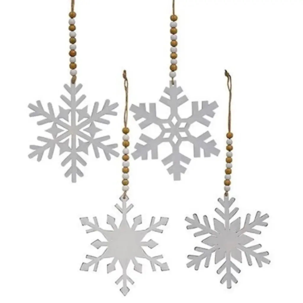 These snowflake ornaments will bring a hint of winter wonderland to your comfy Christmas decor. The set of three vintage-inspired white snowflake charms are crafted from a durable blend of materials to last for many seasons. Their rustic, neutral tones will complement a variety of styles from traditional to farmhouse, adding a touch of understated elegance. Simply hang them on your tree or place them around your mantle for an instant cozy feeling. • Elegant Snowflake Design: Enhance your Christmas tree with our White Snowflake Ornament Set, featuring intricately designed snowflakes that evoke the beauty of winter. • Generous Size: Each ornament measures 11.75 inches tall, making them a standout feature on your tree and adding a touch of elegance to your holiday décor. • Durable Metal Construction: Crafted from high-quality metal, these ornaments are sturdy and built to last, ensuring they can be enjoyed for many holiday seasons to come. • Classic White Color: The pristine white color of these ornaments adds a timeless charm to your indoor Christmas decorations, complementing any festive color scheme with ease. • Complete Set: With multiple ornaments included in the set, you can create a cohesive look on your tree or use them to adorn other areas of your home, bringing a festive ambiance to every corner. Perfect for adding a magical touch to your holiday celebrations. • Experience Timeless Elegance with Sullivan's Home Decor - Celebrating Over 55 Years of Excellence! Explore our extensive collection of quality products, meticulously curated to suit every style, season, and occasion. From classic designs to on-trend accents, Sullivan's Home Decor seamlessly blends tradition with modernity, ensuring there's something special for everyone. Transform your living spaces with our enduring commitment to style and sophistication. • Ornaments measure 9.75"L x .25"W x 11.75"H, 8.75"L x .25"W x 10.5"H, 7"L x .25"W x 8.5"H