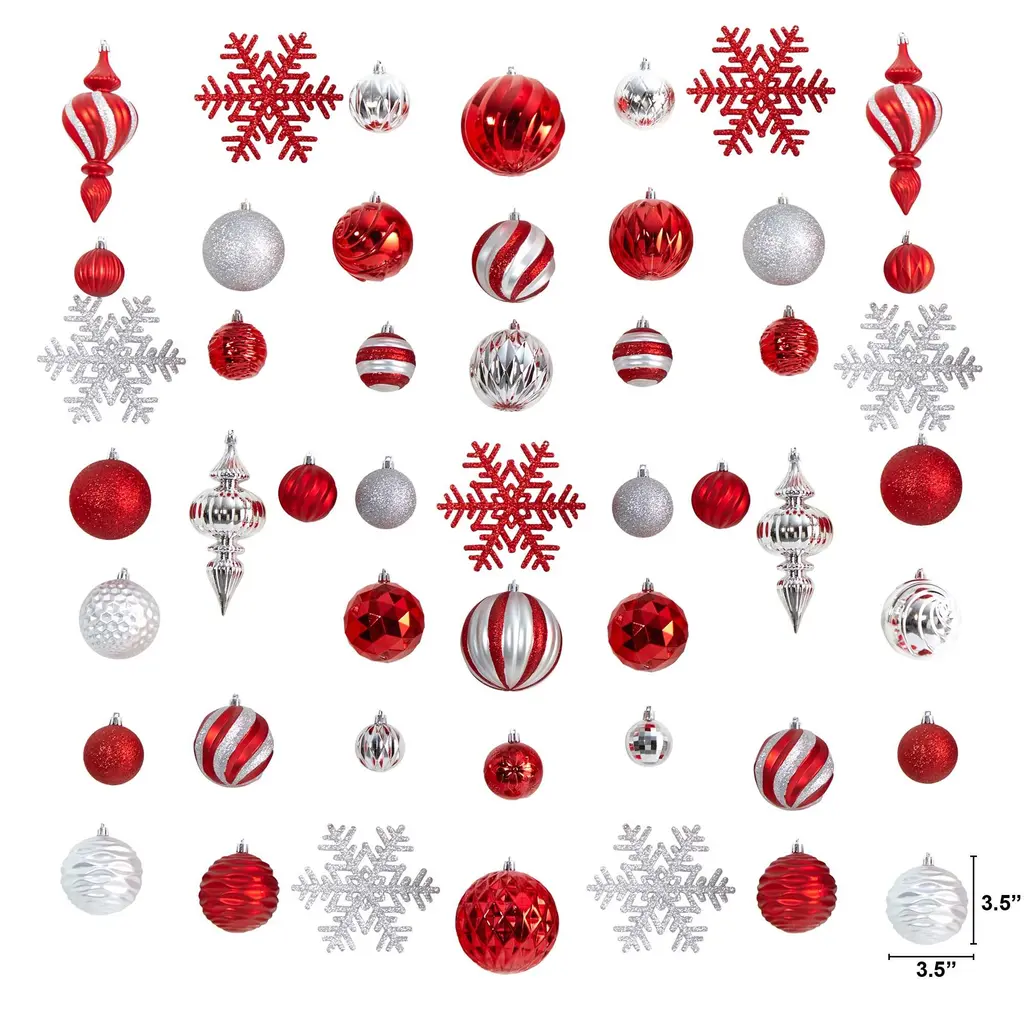 81 Pcs Shatterproof Ornament Set - 3.5 In. (H) X 3.5 In. (W) X 3.5 In. (D) - Silver/red