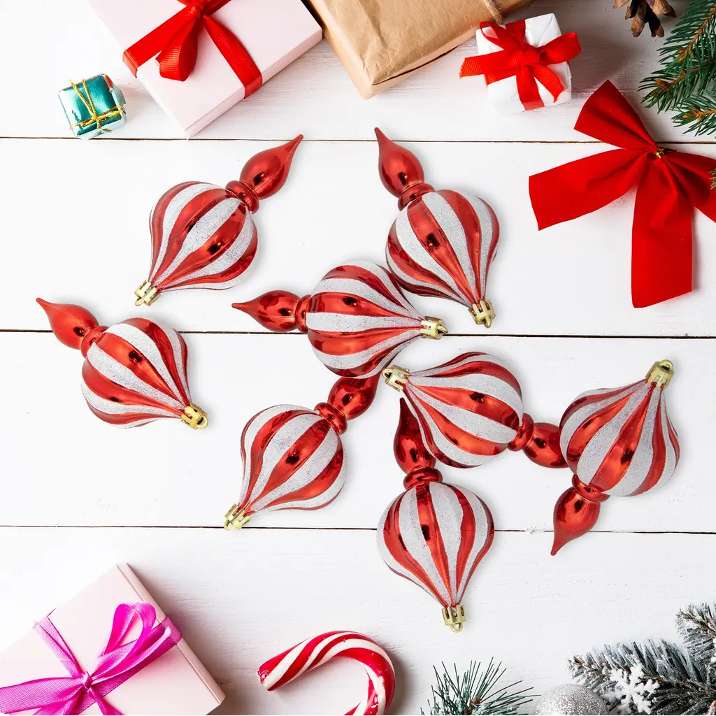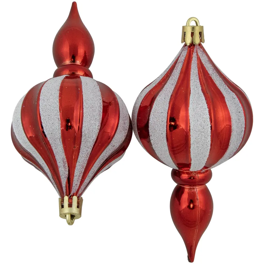 8Ct Red And White Shatterproof Finial Christmas Ornaments, 4.75" - Plastic - Red