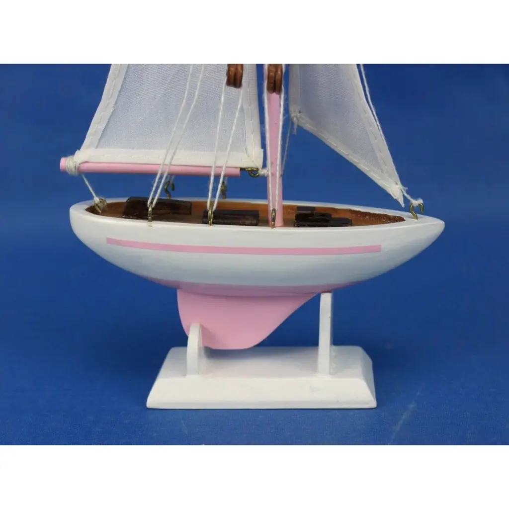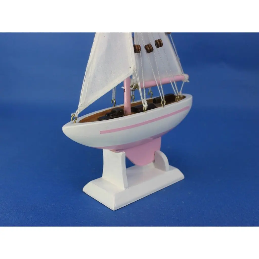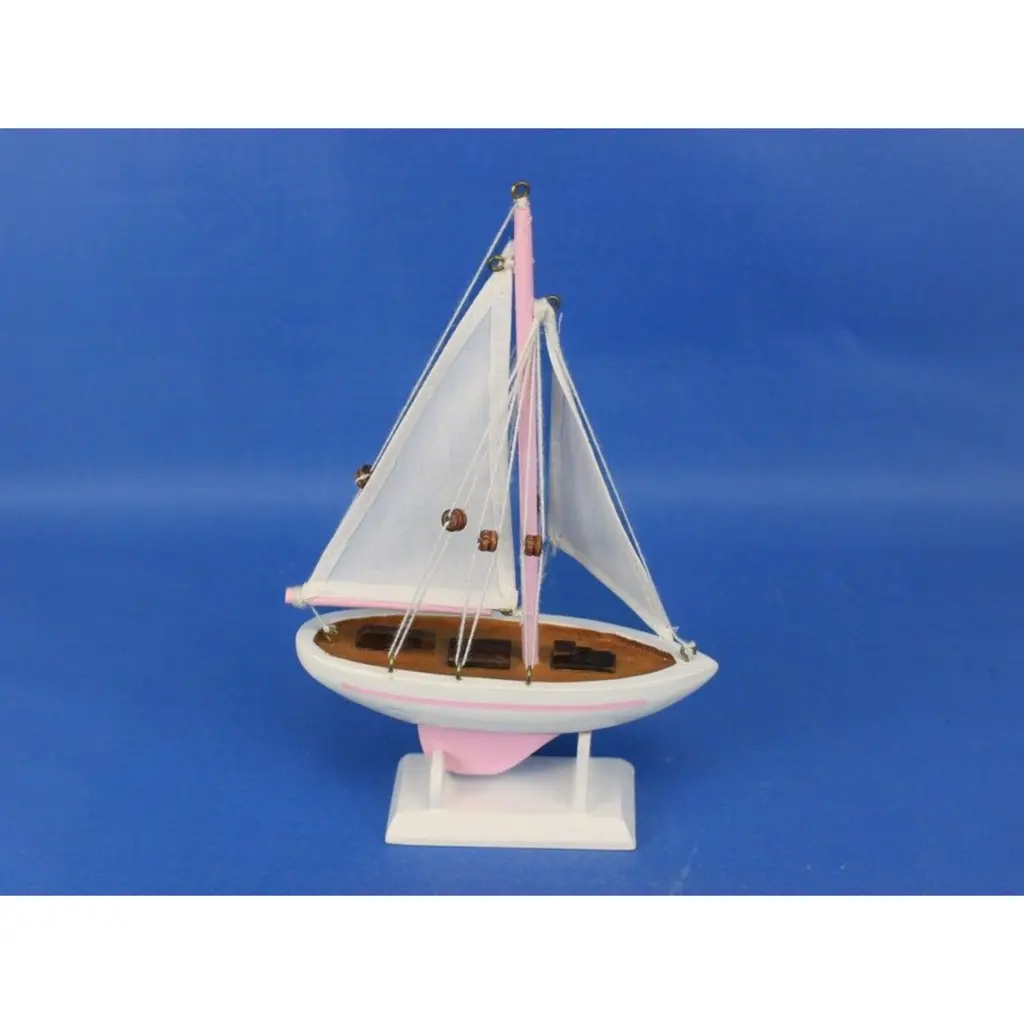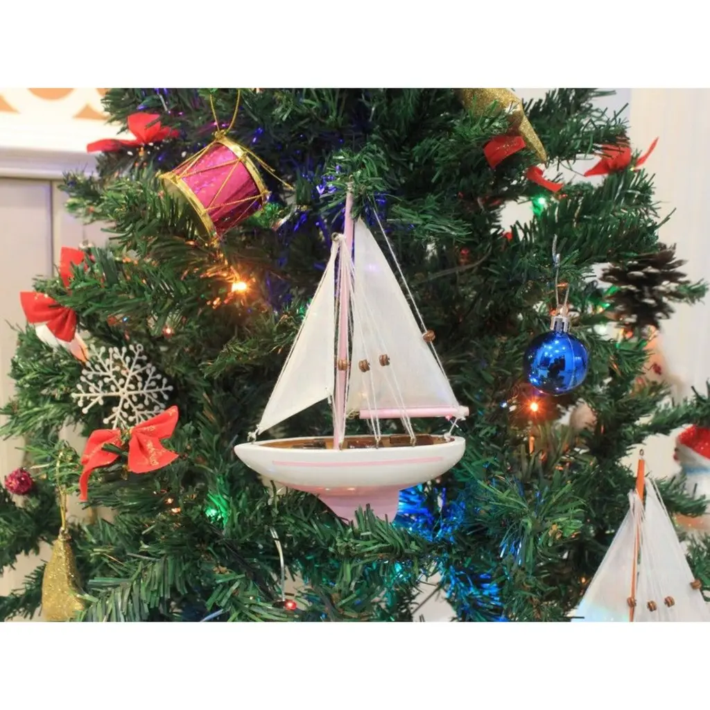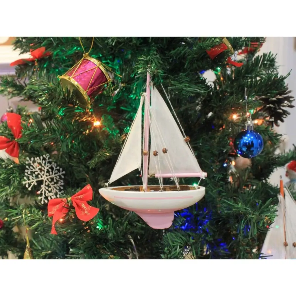Specification: Description: Add a touch of fun and charm to any room with this vibrant pink and white sailboat model tree ornament, made from solid wood for durability and style. With overall dimensions of 5" L x 1.5" W x 9" H, this beautifully handcrafted sailboat features a solid wood hull, masts, and stand, making it a perfect decorative accent. Its removable base allows you to use it as a Christmas tree ornament, cake topper, or a standalone piece for nautical-themed parties and receptions. The lively colors and intricate design make it an ideal gift for friends, children, or party guests, and a charming addition to offices, beach houses, or sunrooms.