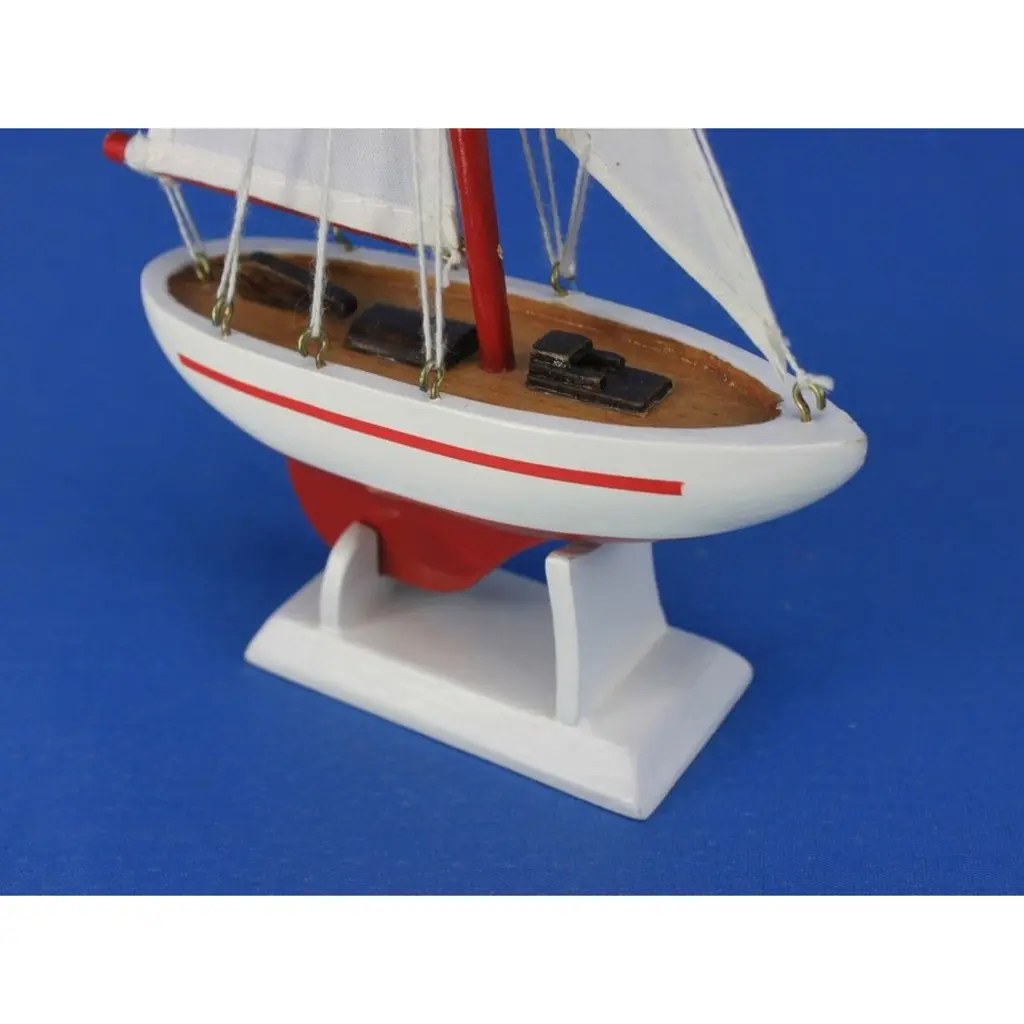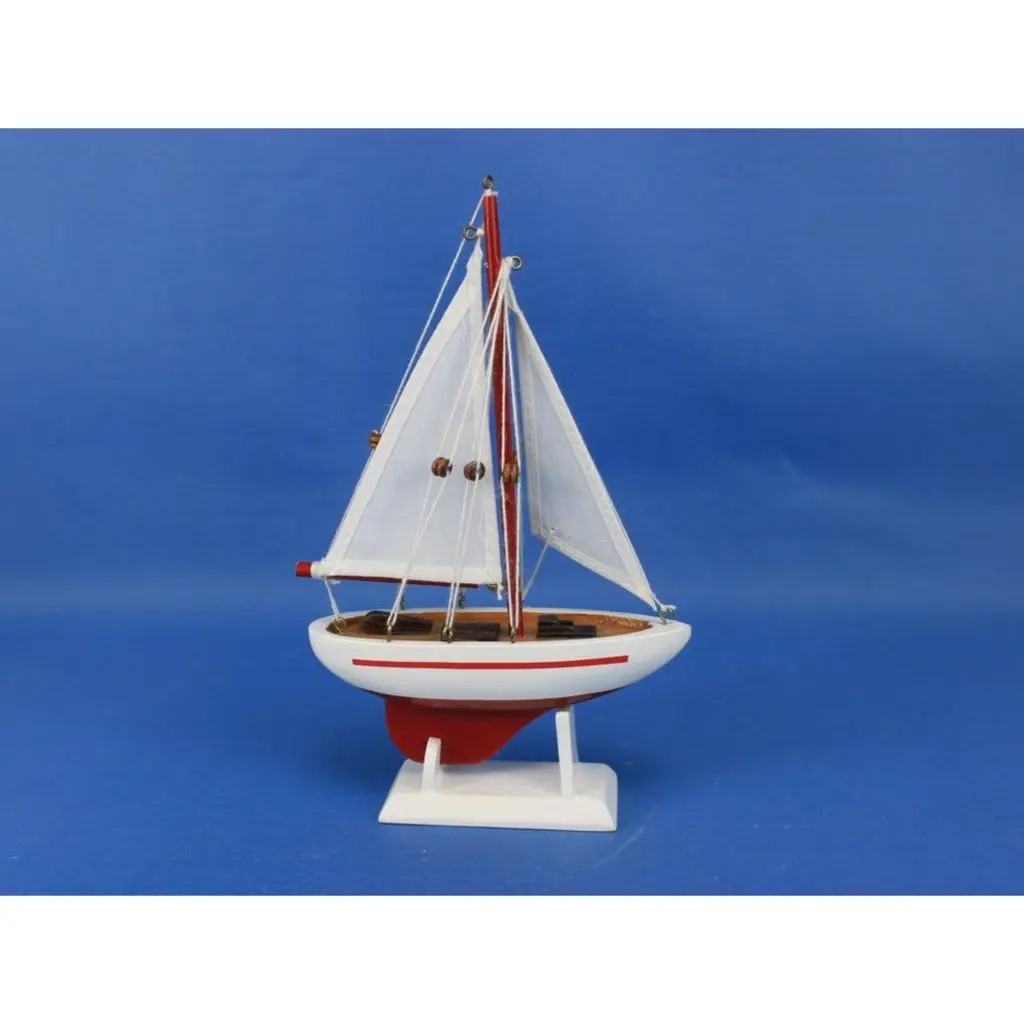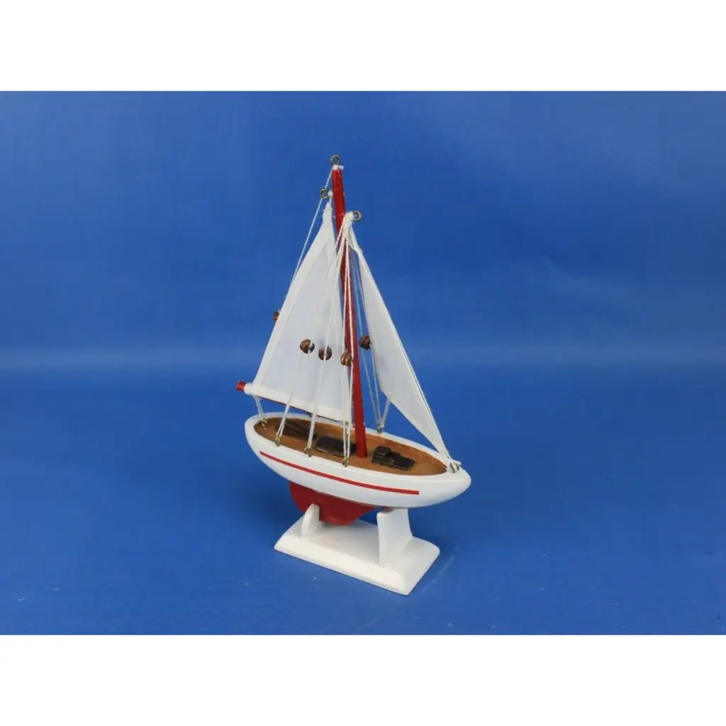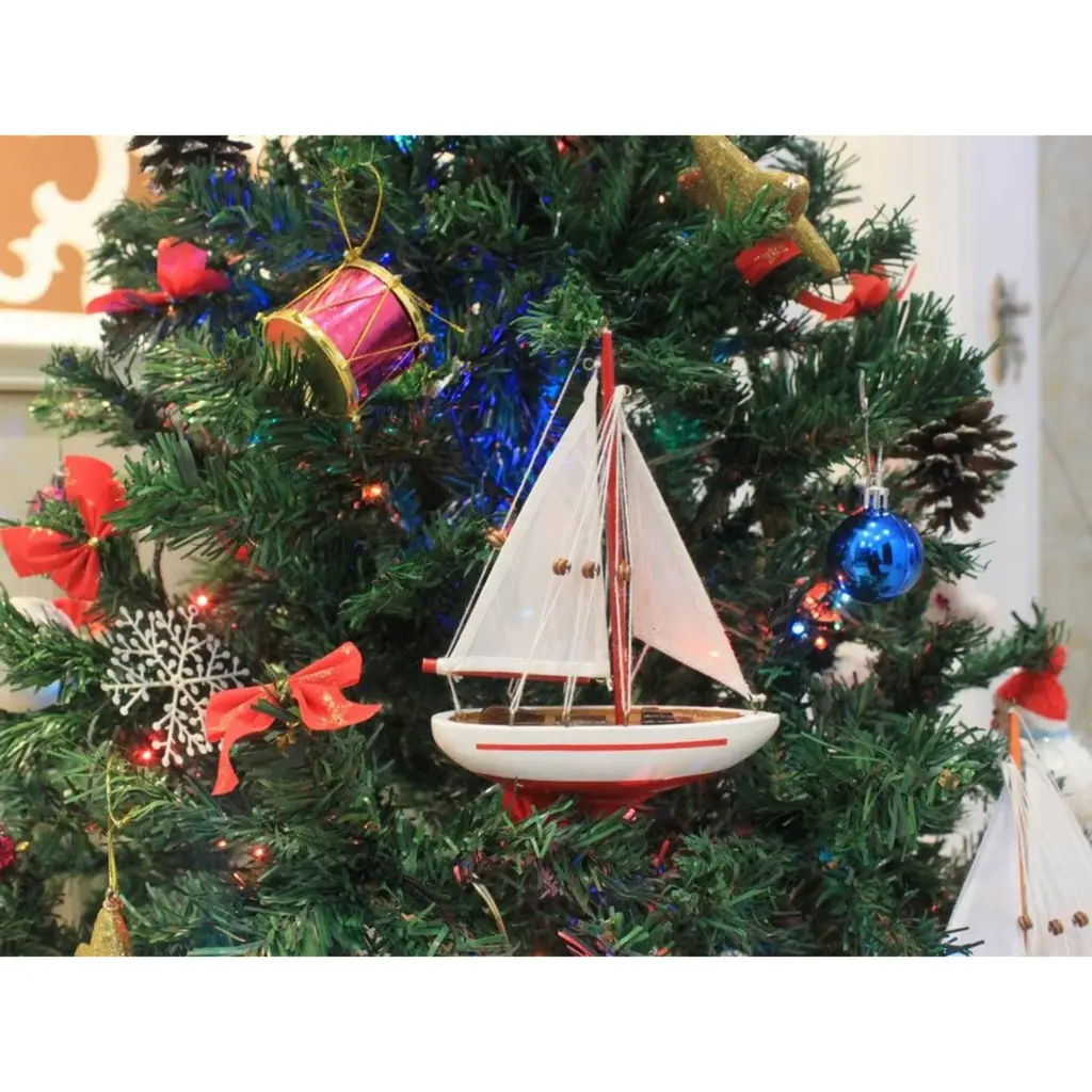 9" Red-White Wooden Sailboat Model Ideal For Christmas Decorative Tree Ornament - 5" L X 1.5" W X 9" H - White/red