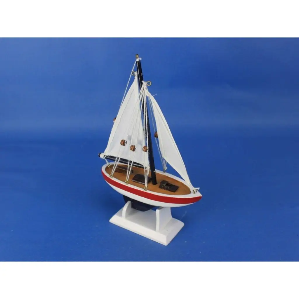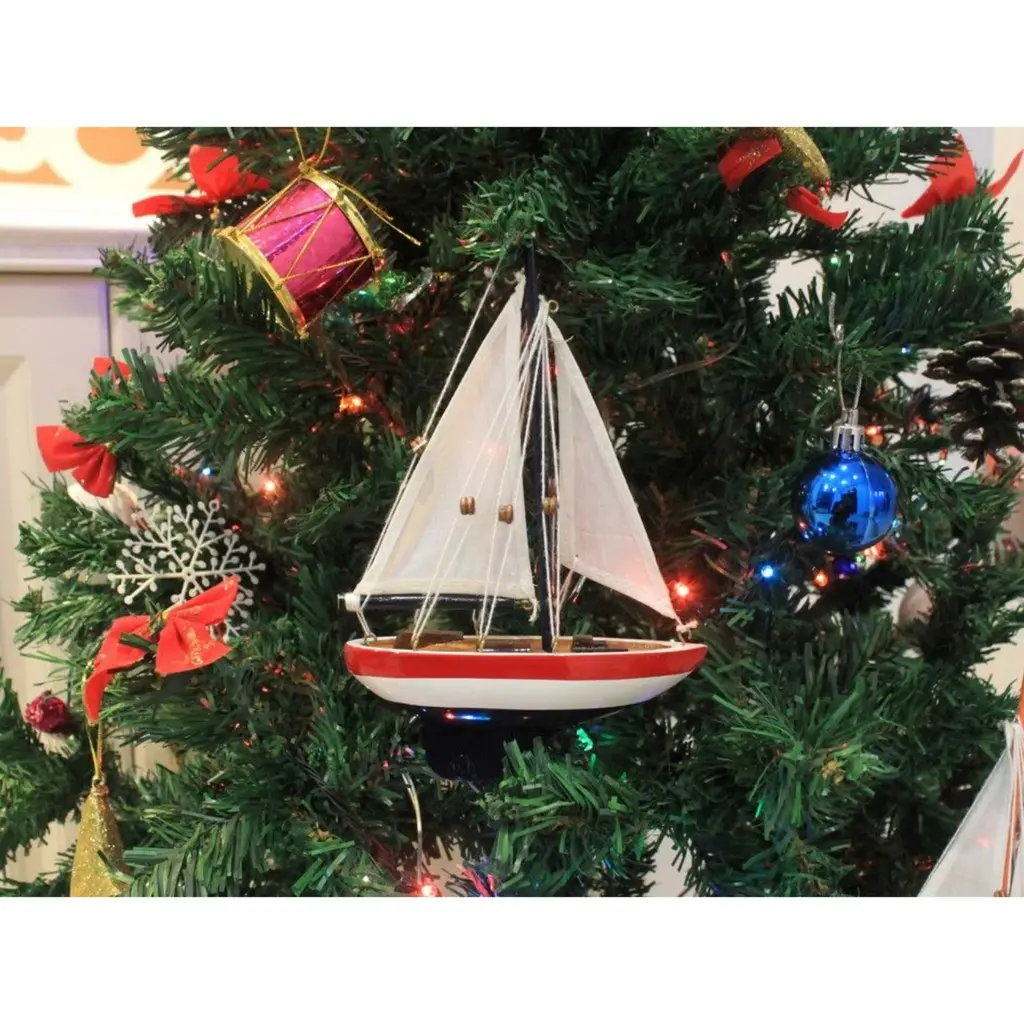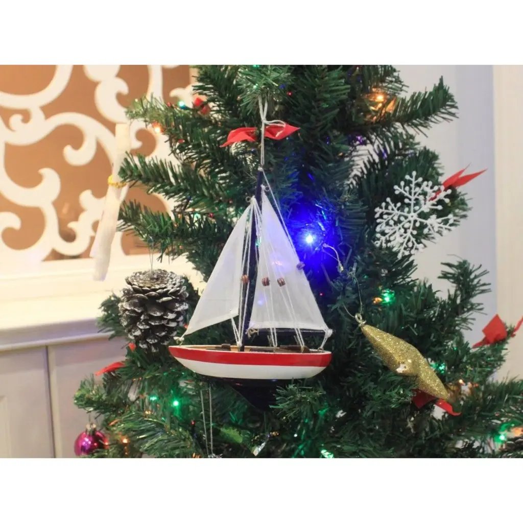 Specification: Description: Add a splash of nautical charm to your space with this handcrafted sailboat model ornament, featuring a solid wood hull, masts, and stand. Available in vibrant white and red colors, this ornament is perfect for brightening up any room or as a unique nautical decoration. Measuring 5" L x 1.5" W x 9" H, it serves as a versatile piece, functioning as a Christmas tree ornament, cake topper, or a charming centerpiece for events. Whether for a beach house, office, or sunroom, this sailboat model is an ideal gift for friends, children, or party guests, offering a playful touch to any occasion. It also includes a string for easy hanging, making it ready for display right out of the box.