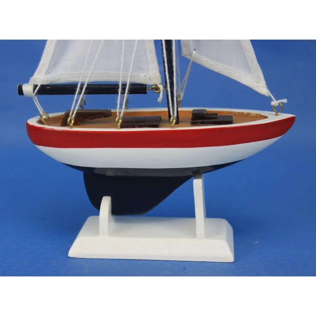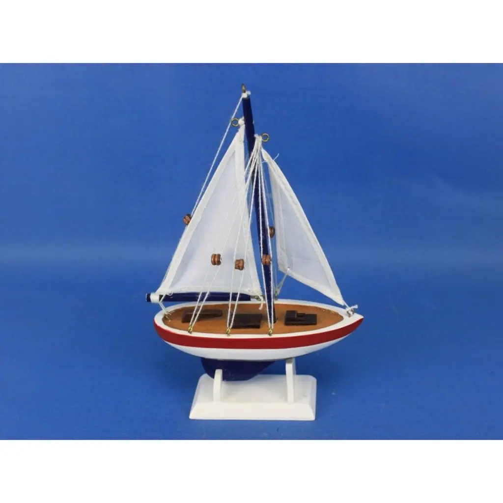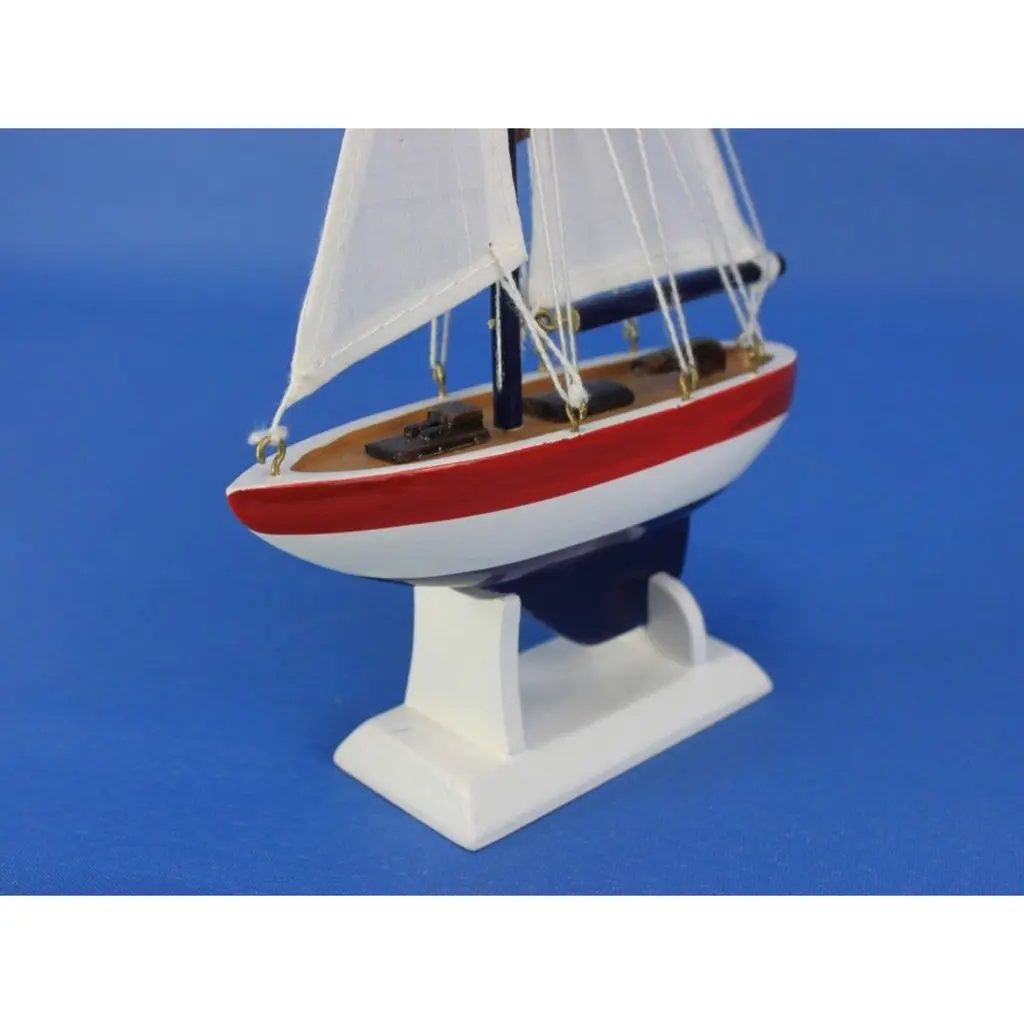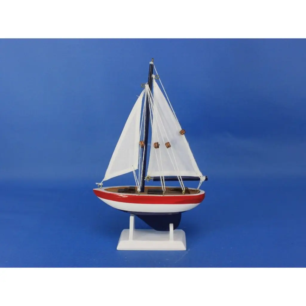 Specification: Description: Add a splash of nautical charm to your space with this handcrafted sailboat model ornament, featuring a solid wood hull, masts, and stand. Available in vibrant white and red colors, this ornament is perfect for brightening up any room or as a unique nautical decoration. Measuring 5" L x 1.5" W x 9" H, it serves as a versatile piece, functioning as a Christmas tree ornament, cake topper, or a charming centerpiece for events. Whether for a beach house, office, or sunroom, this sailboat model is an ideal gift for friends, children, or party guests, offering a playful touch to any occasion. It also includes a string for easy hanging, making it ready for display right out of the box.