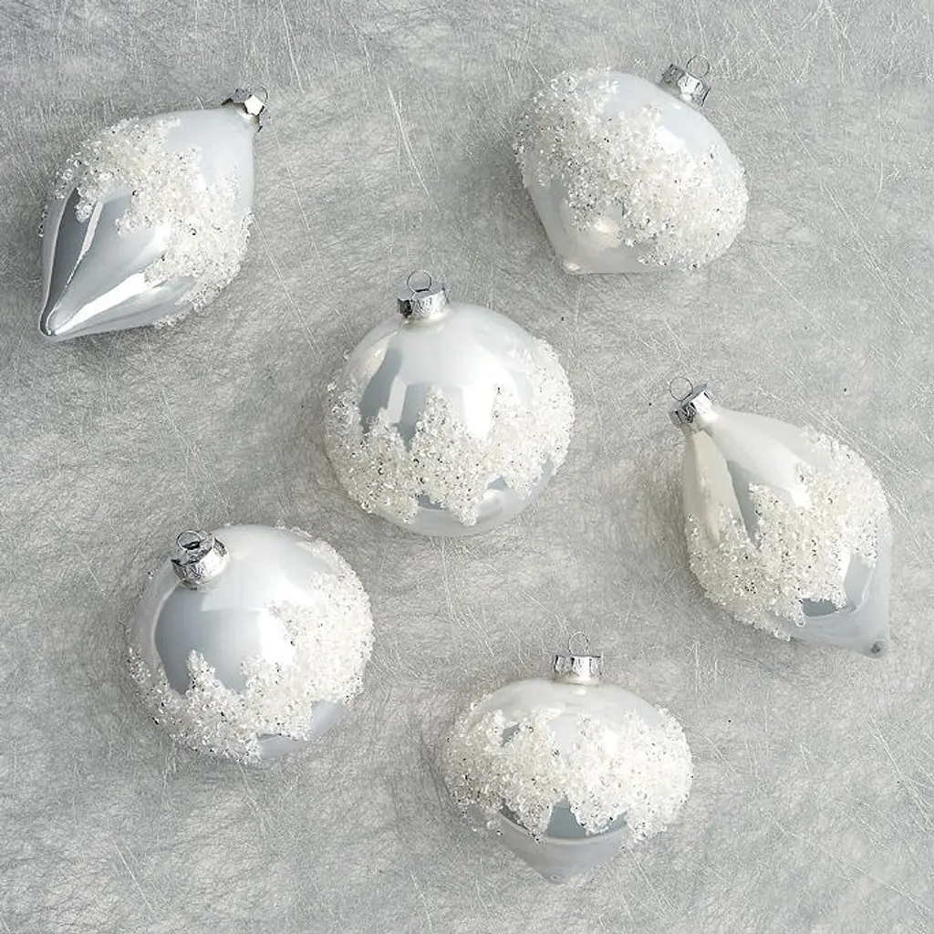 9Ct Silver Glittered Textured Christmas Glass Ball Ornaments 3" (80mm) - Silver