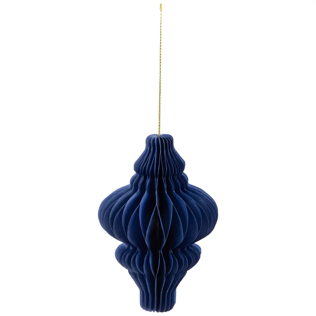 Accordion Honeycomb Foldable Paper Christmas Finial Ornaments - 4" - Set Of 4 - Blue