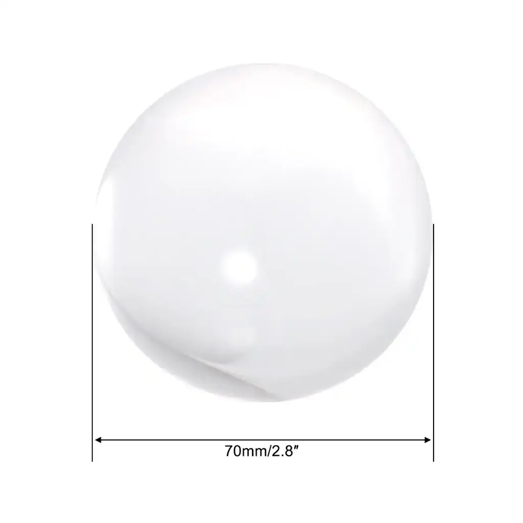 Perfect size, round shaped with smooth finish.Scratch proof. Hard surface provides the resistance ability on scratch or stab while using. And the Acrylic is much stronger than a glass sphere or crystal ball.Light weight. Acrylic sphere is portable (50% lighter than glass) and easy to install as a ornament.Transparent. 92% light transmittance, good for visual device like len or as a lab equipment. Furthermore, the acrylic ball has the capability to resist high temp.Multi purpose. Acrylic plastic resin balls could be used as Zoom Equipment (len), Light decoration, crafts project or home ornaments.Solid Round Acrylic Sphere BallTransmittance: 0.92Materials: Acrylic(PMMA)Package Content: 1 pcs Acylic Sphere