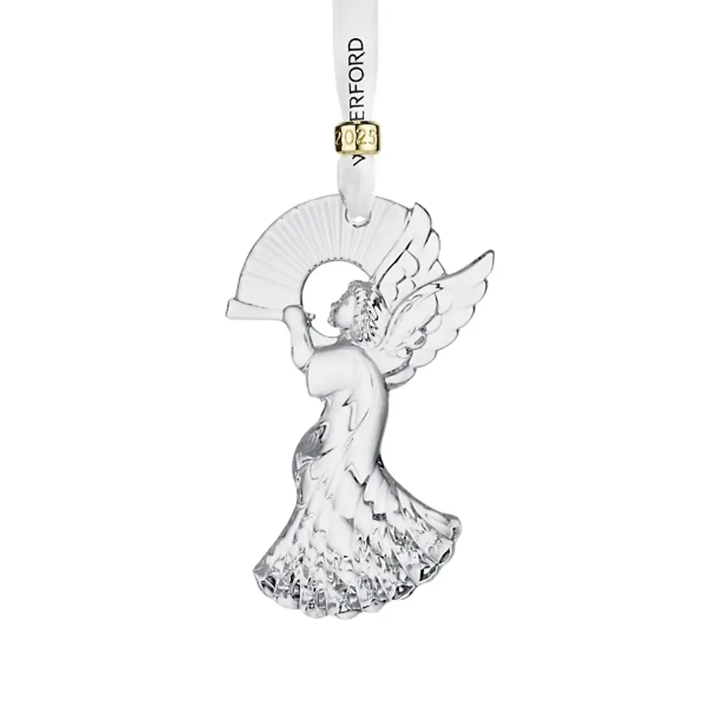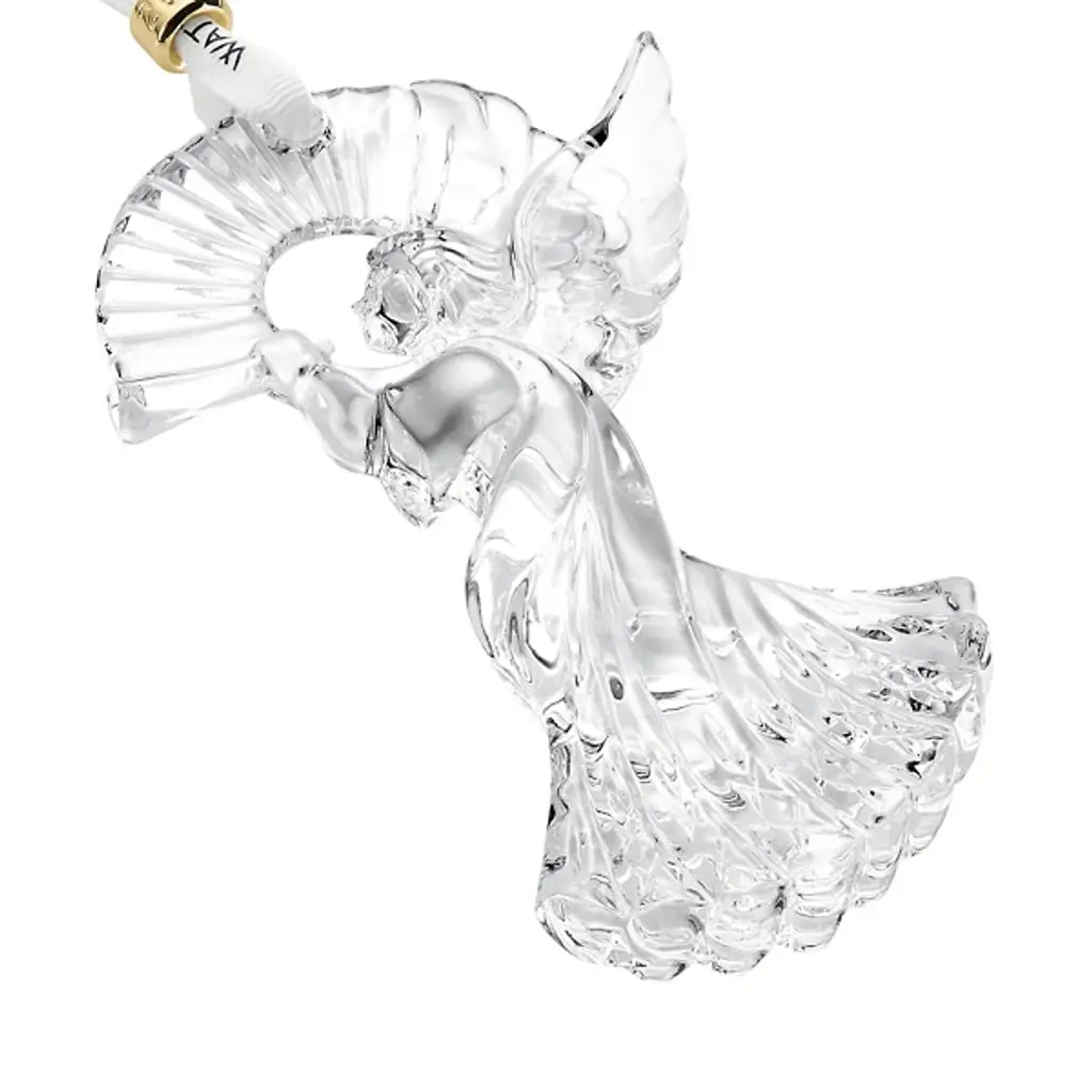The Annual Angel Ornament from Waterford presents a guardian angel rendered in sculptural crystal. Redesigned for this collection, the piece features intricate cuts specifically positioned to reflect light in multiple directions throughout the angel's form. The ornament captures both the grace and beauty associated with angelic imagery through careful attention to proportional details. Radiant cut work creates a warm glow effect when light passes through the various faceted surfaces. Lead-free crystal construction provides the optical properties needed for effective light refraction.