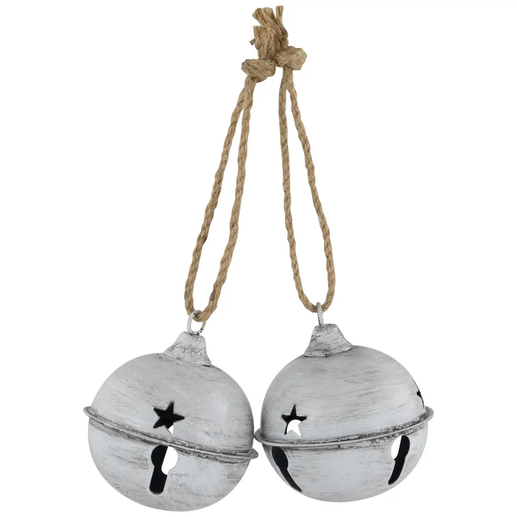 Antiqued Christmas Jingle Bell Ornaments - 3" - White - Set Of 2 - 7" - White