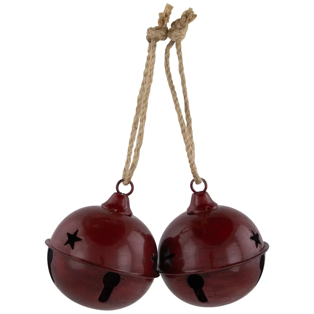 Antiqued Jingle Bell Christmas Ornaments - 3" - Burgundy - Set Of 2 - Metal - Red