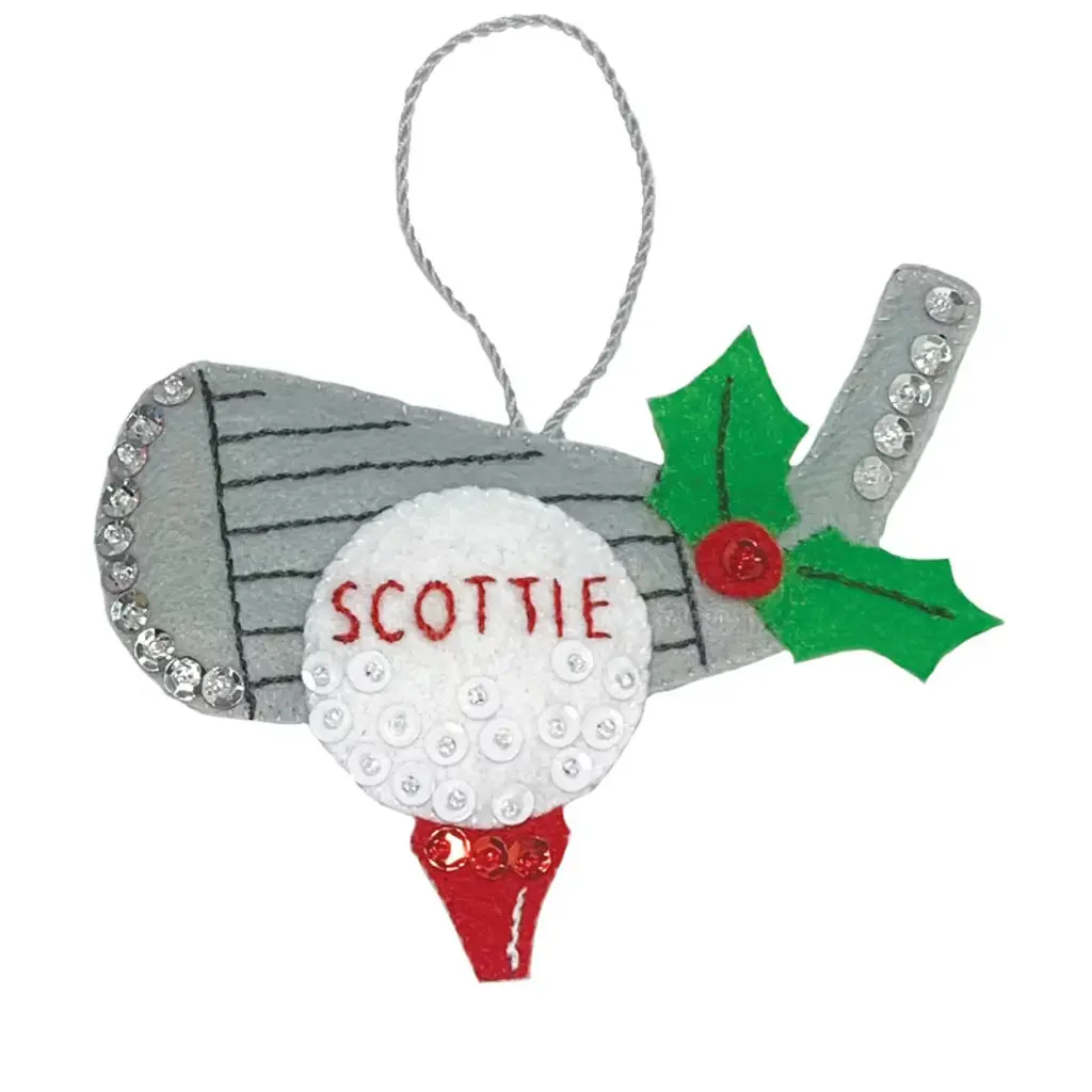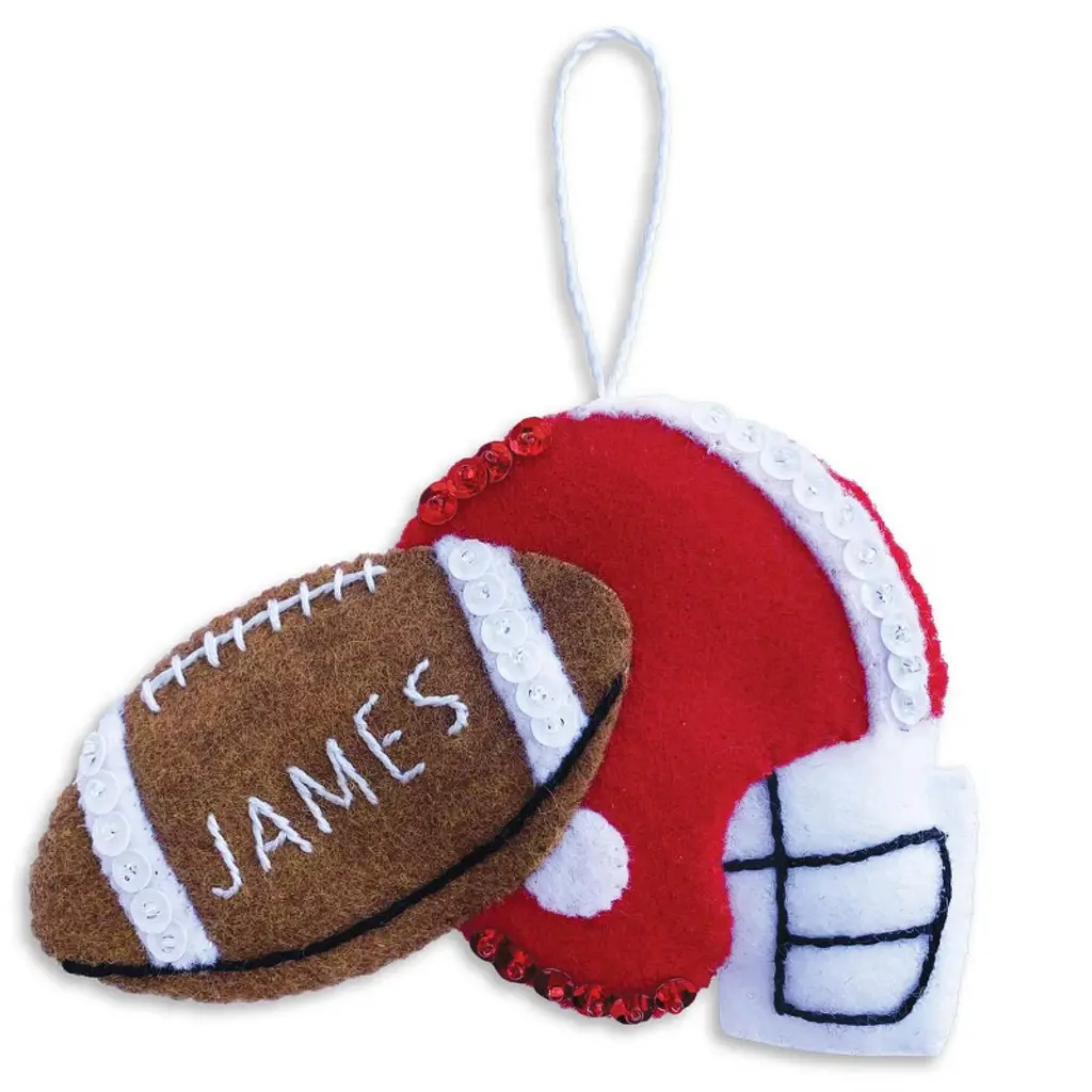 Hit a home run this holiday season with the Baseball Personalized Felt Ornament Kit. Featuring a classic white baseball trimmed in red stitching, crossed bats, and a jolly Santa hat with festive holly, this ornament is made even more special with your personalized name on the cap. A winning keepsake for players, coaches, and fans alike. Includes pre-stamped USA made felt, DMC floss, sequins, beads, needle, and complete instructions.