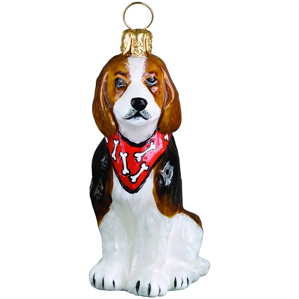 A charming addition to the tree, this beagle ornament is handcrafted of mouth-blown glass and hand-painted by artisans in Poland.