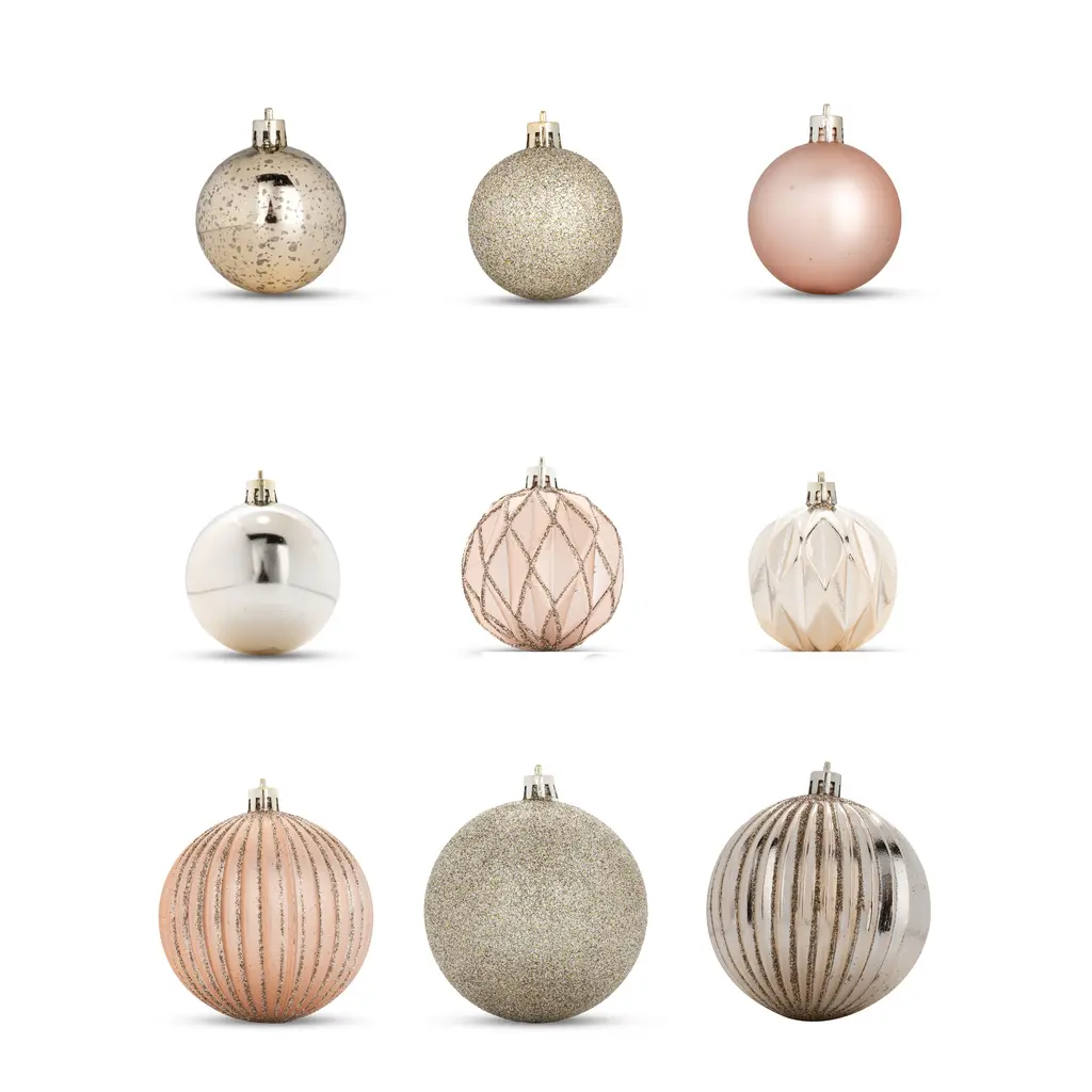 Celebrate the holiday season with Becki Owens Shatterproof Christmas Ornaments! This set of 40 is beautiful and ready to hang or gift. Inspire some extra Christmas cheer this year, and every Christmas to come! Upgrade last year’s decorations with stunning new ornaments fit for Santa himself! Spread the joy of festive holiday cheer this year, and every Christmas to come.PRODUCT FEATURES:Set of 50 Ball OrnamentsShatterproofReady to HangLightweightAssorted Silver or Gold Tone ColorsELEGANT SHATTERPROOF ORNAMENTS‘Tis the season to be jolly! Shatterproof construction means you’ll never have to worry about broken glass, and the lightweight design doesn’t weigh down branches or interfere with other decorations. Perfect for couples with pets, families with kids, and anyone who could use some more peace of mind around the sometimes stressful holiday season. Deck the halls of houses, apartments, schools, office buildings and retail stores with these Fa-La-La-La-Lovely ornaments!FESTIVE CHRISTMAS TREE DECORSo much fun to decorate with! Use these ornaments to add a delightful pop to your tree, fireplace, mantel, or window area. No matter how you deploy them in your decor, you’ll enjoy days and weeks of merriment with these beauties glinting perfectly in the background.BECKI OWENS LIVINGSince her vault onto the Instagram design stage in 2015, Becki has designed hundreds of spaces working with everything from intimate remodels to complete custom builds, and her projects have been featured in mainstream publications such as Luxe Magazine, Wall Street Journal, and Architectural Digest. Now we’ve created a space where everyone can get the unique Becki Owens signature style for their own space—Becki Owens Living. Come see, be inspired by, and shop the Becki Owens look for your home. Because, at Becki Owens Living, we embrace real, everyday life to help you create a space that is completely livable, completely stylish, and completely yours.