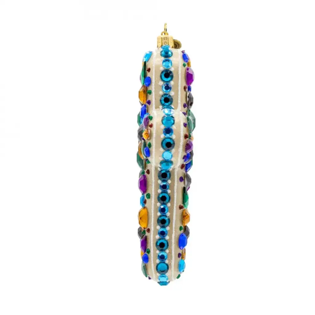 This exquisite cross ornament sparkles with a lavish array of multi-colored jewels, hand-set in a variety of cuts—from round to marquise and teardrop—creating a stunning mosaic of light and elegance.
